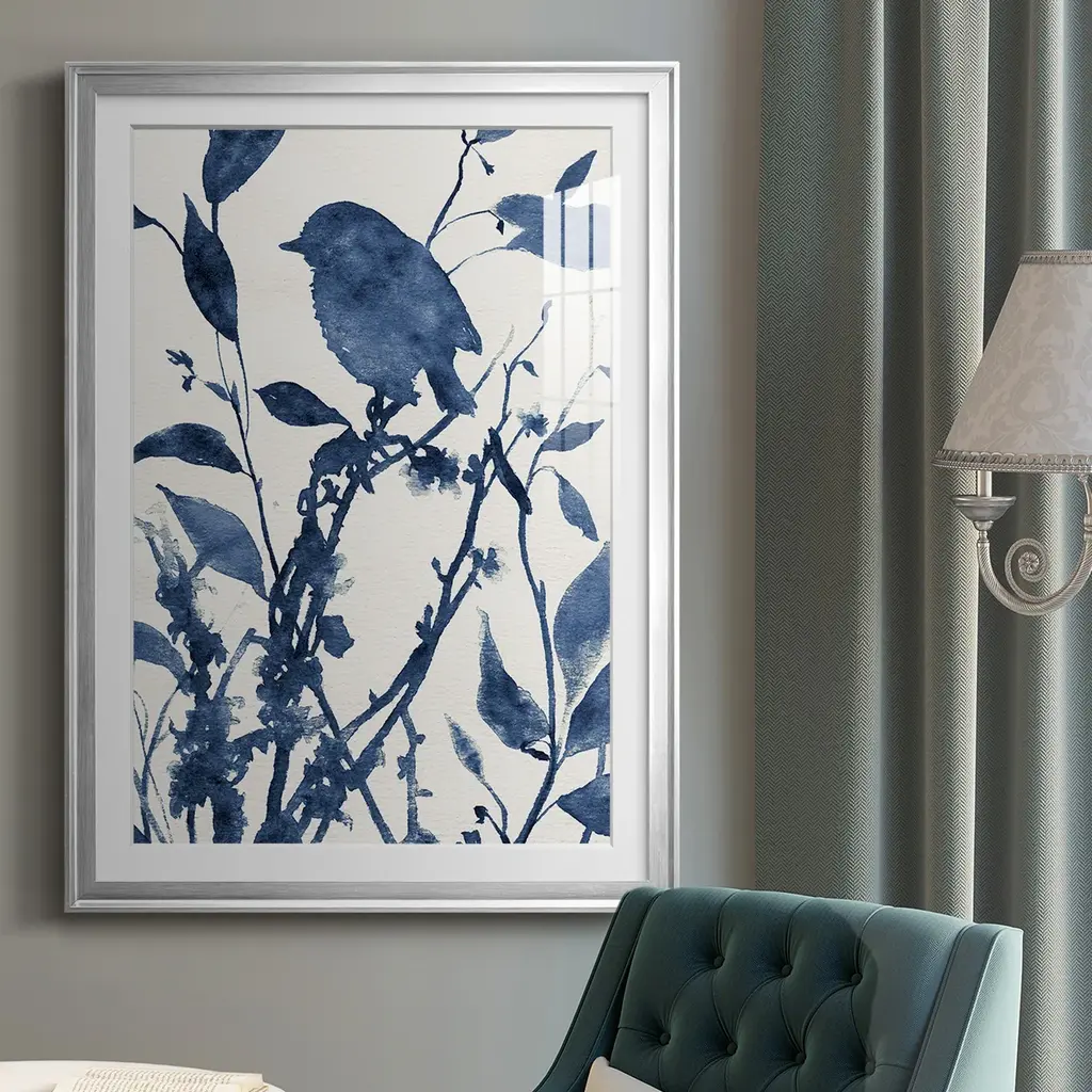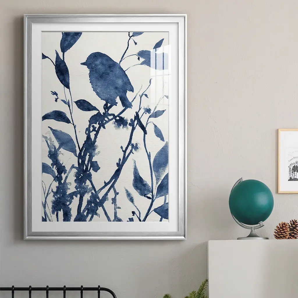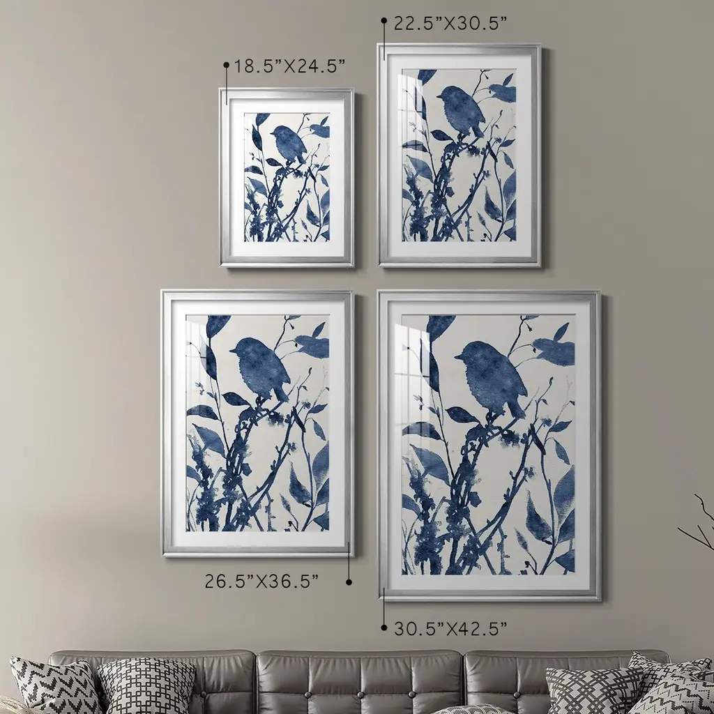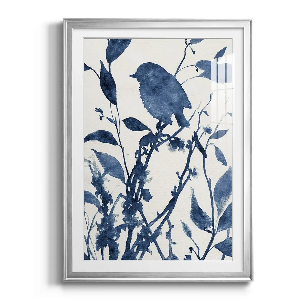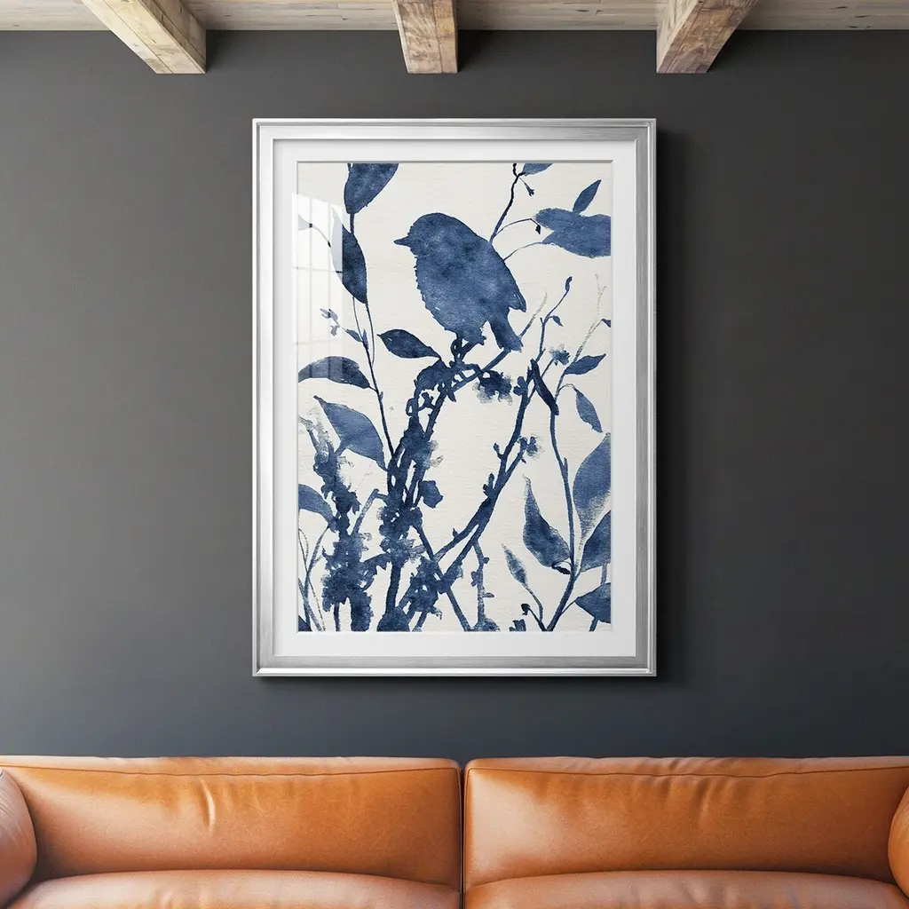 Bluebird Silhouette II Premium Framed Print - Ready to Hang A Premium Framed Print created to last. Framed in distressed wood and available in an array of sizes and colors Featuring a beveled a solid wood stretcher bar, each piece comes ready to hand 4 SIZES AVAILABLE 30.5''X42.5'' - Overall Size 26.5'X36.5'' - Overall Size 22.5''x30.5'' - Overall Size 18.5''x24.5'' - Overall Size Each piece is made to order. Each piece comes with hanging hardware. Made in the USA Ready to Hang Giclee Paper Print Acrylic Glass Beveled Matt Board