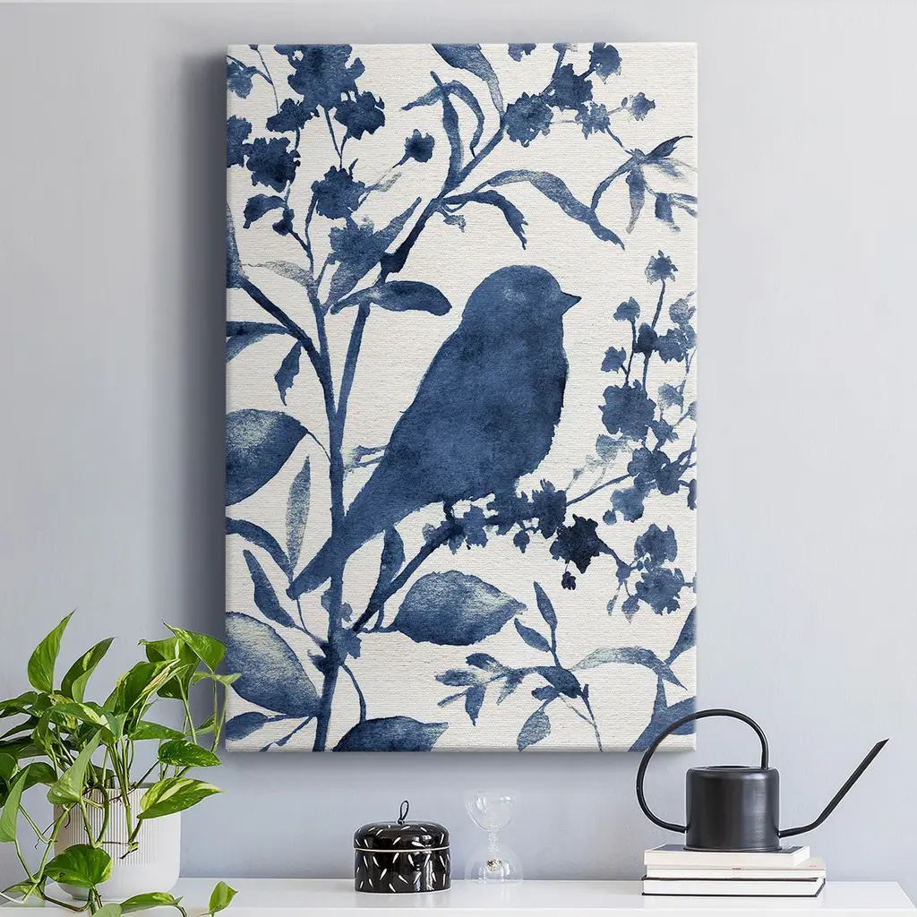 Bluebird Silhouette II Premium Gallery Wrapped Canvas - Ready to Hang A premium hand stretched gallery wrapped canvas print created to last. Featuring a beveled a solid wood stretcher bar, each piece comes ready to hand 6 SIZES AVAILABLE 8''X12'' - Overall Size 12''X18'' - Overall Size 18''X27'' - Overall Size 24''x36'' - Overall Size 32''x48'' - Overall Size 40''x60'' - Overall Size Each piece is made to order. Built to Last Each piece comes ready to hang Solid wood stretcher Fade and Water resistant Made domestically