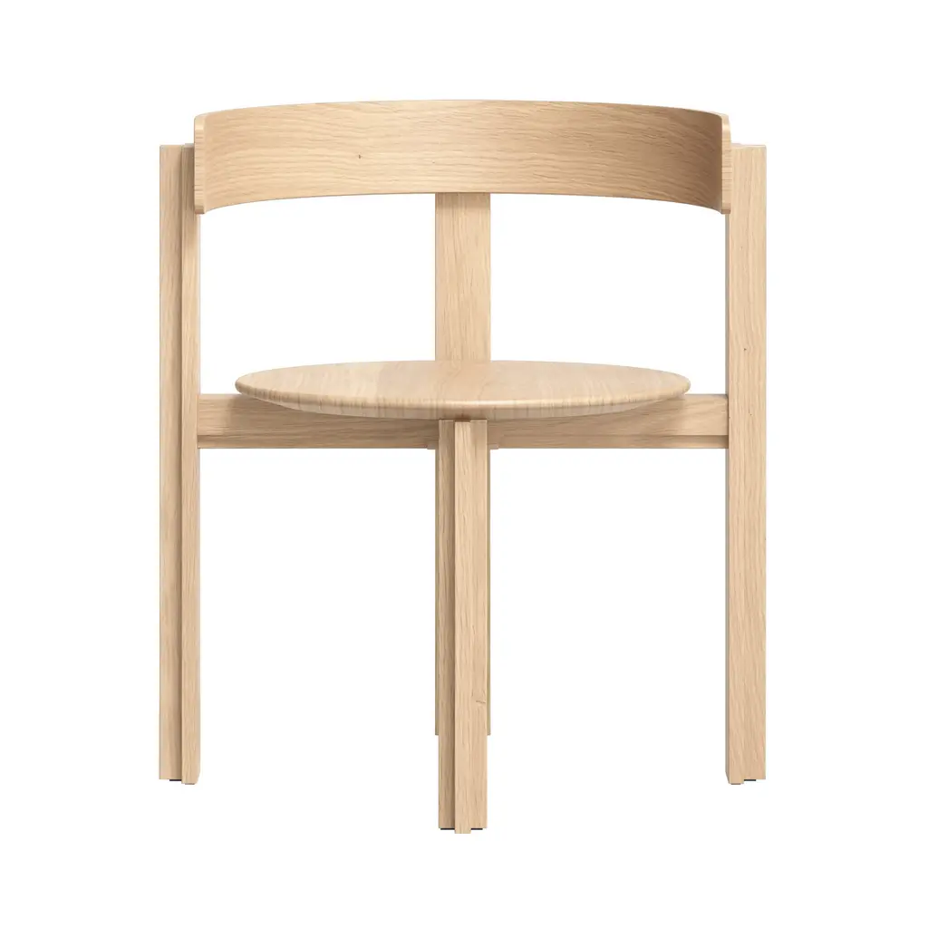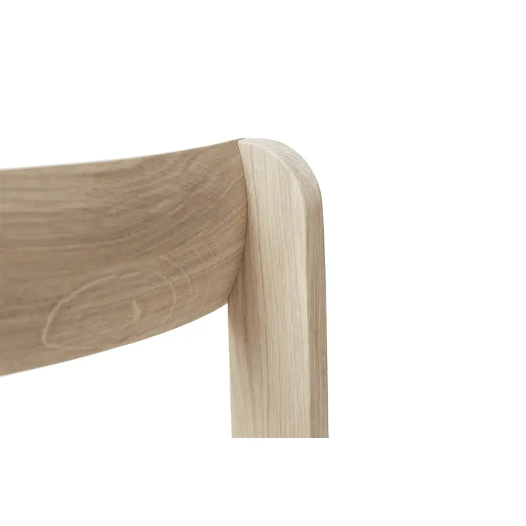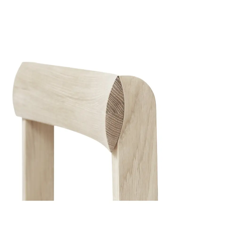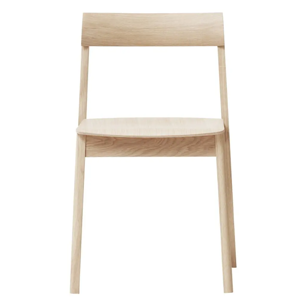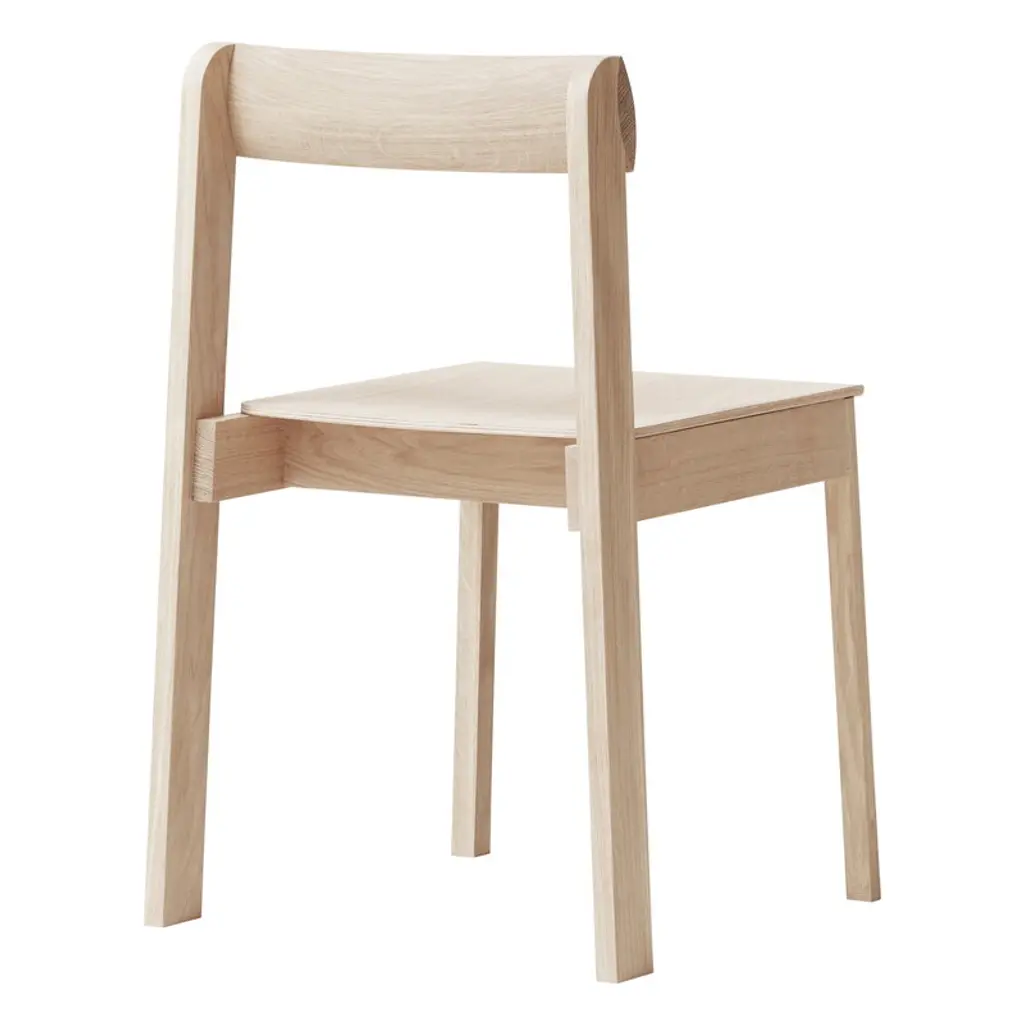 The Blueprint chair by Form & Refine is a distinctive yet timeless solid wood chair adorned with beautiful wood grain patterns. Designed by Herman Studio, the Blueprint chair has a bent plywood seat and backrest that conform to the shapes of the body. The combination of sturdy legs in the back and sleek front legs gives the chair a playful, recognizable silhouette. The Blueprint chair is stackable and, besides home use, also well suited for public environments.