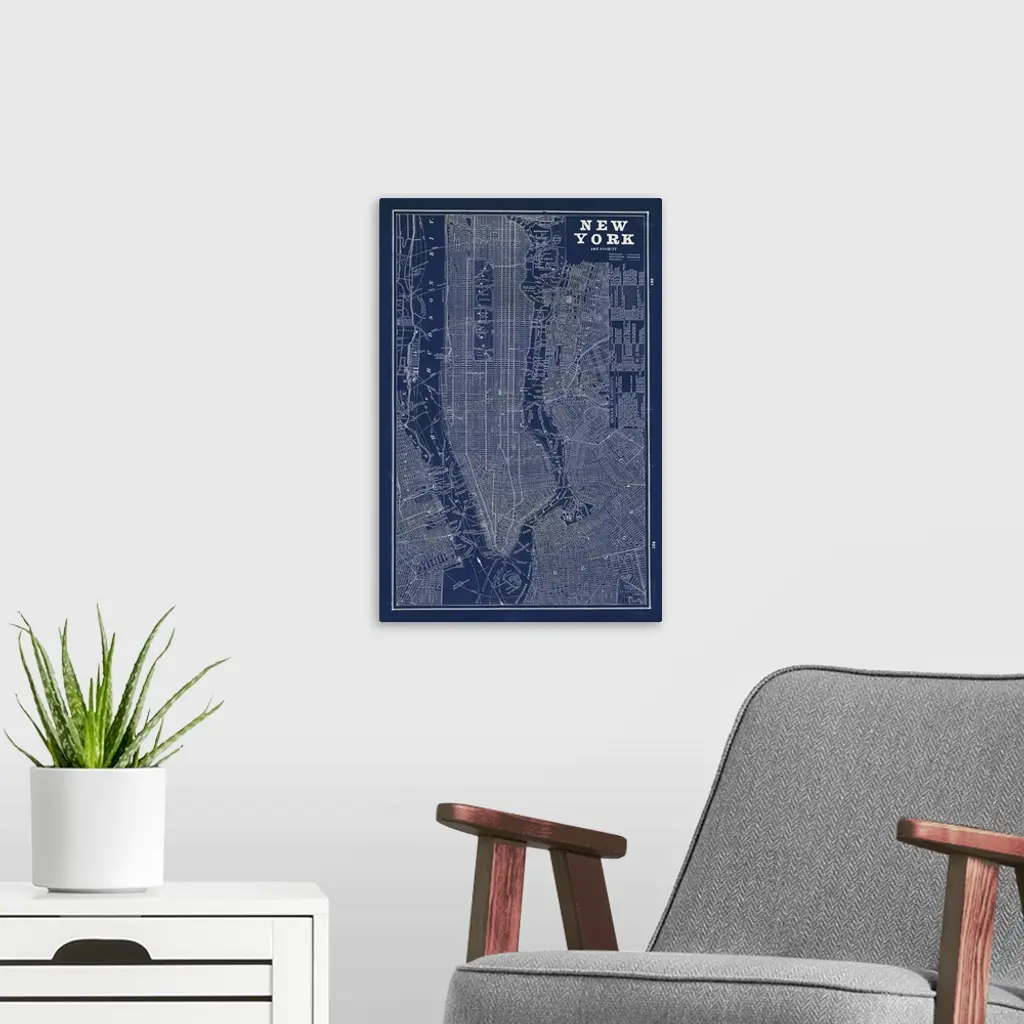 Blueprint Map New York wall art for home and office decor. Discover canvas art prints, photos, mural, big canvas art and framed wall art in GreatBigCanvas.com's varied collections.