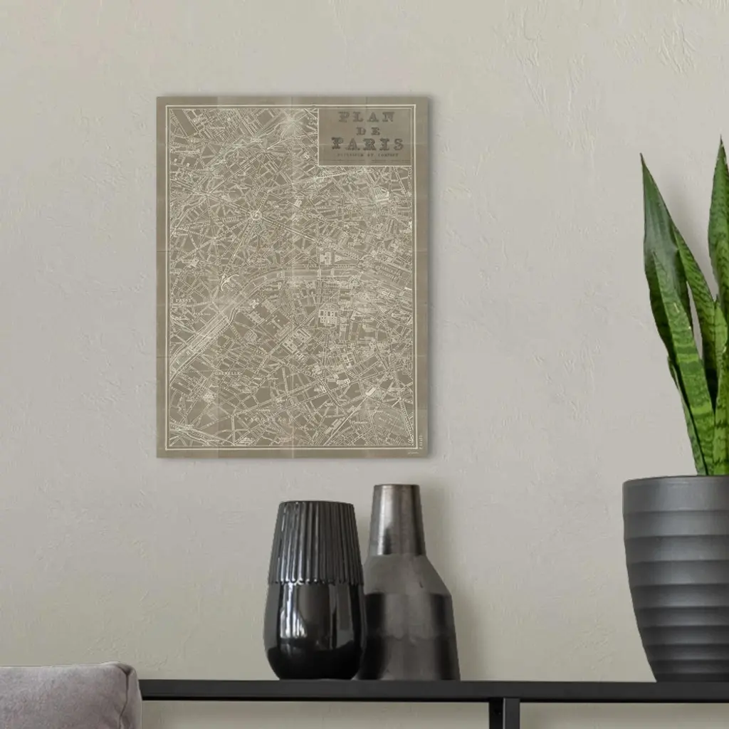 Blueprint Map Paris Taupe wall art for home and office decor. Discover canvas art prints, photos, mural, big canvas art and framed wall art in GreatBigCanvas.com's varied collections.