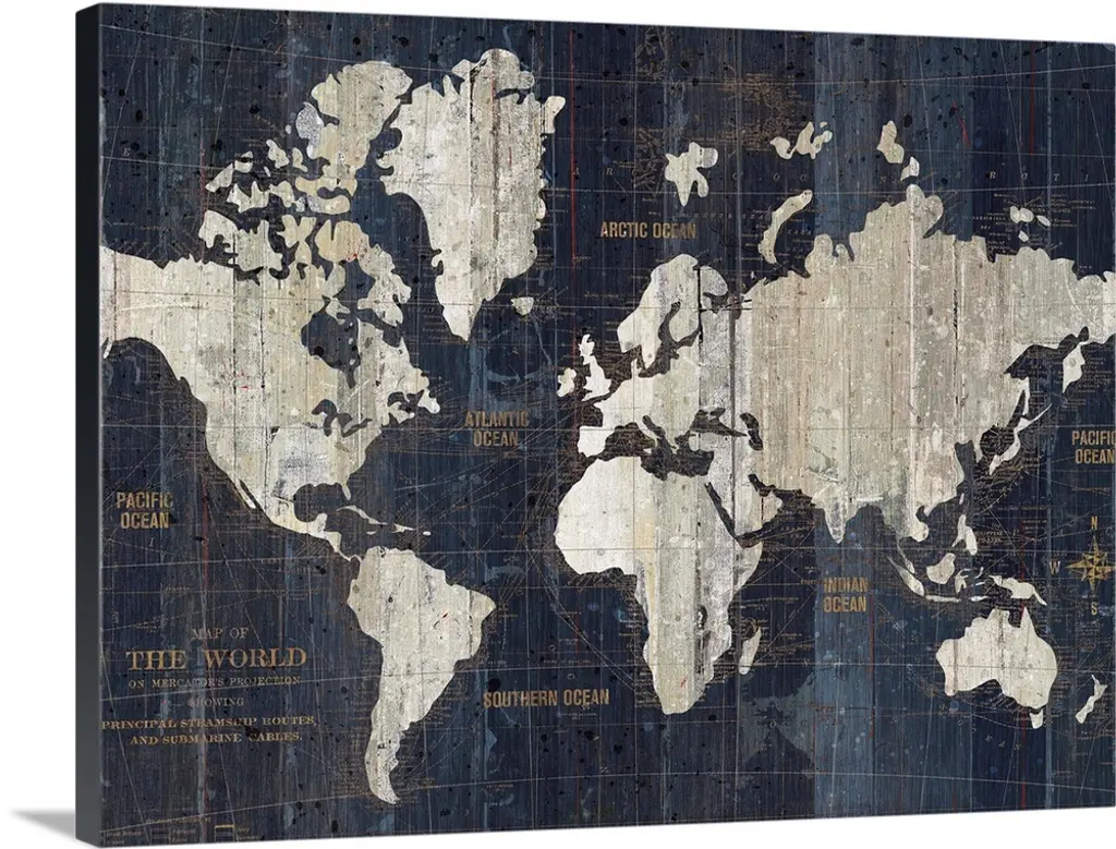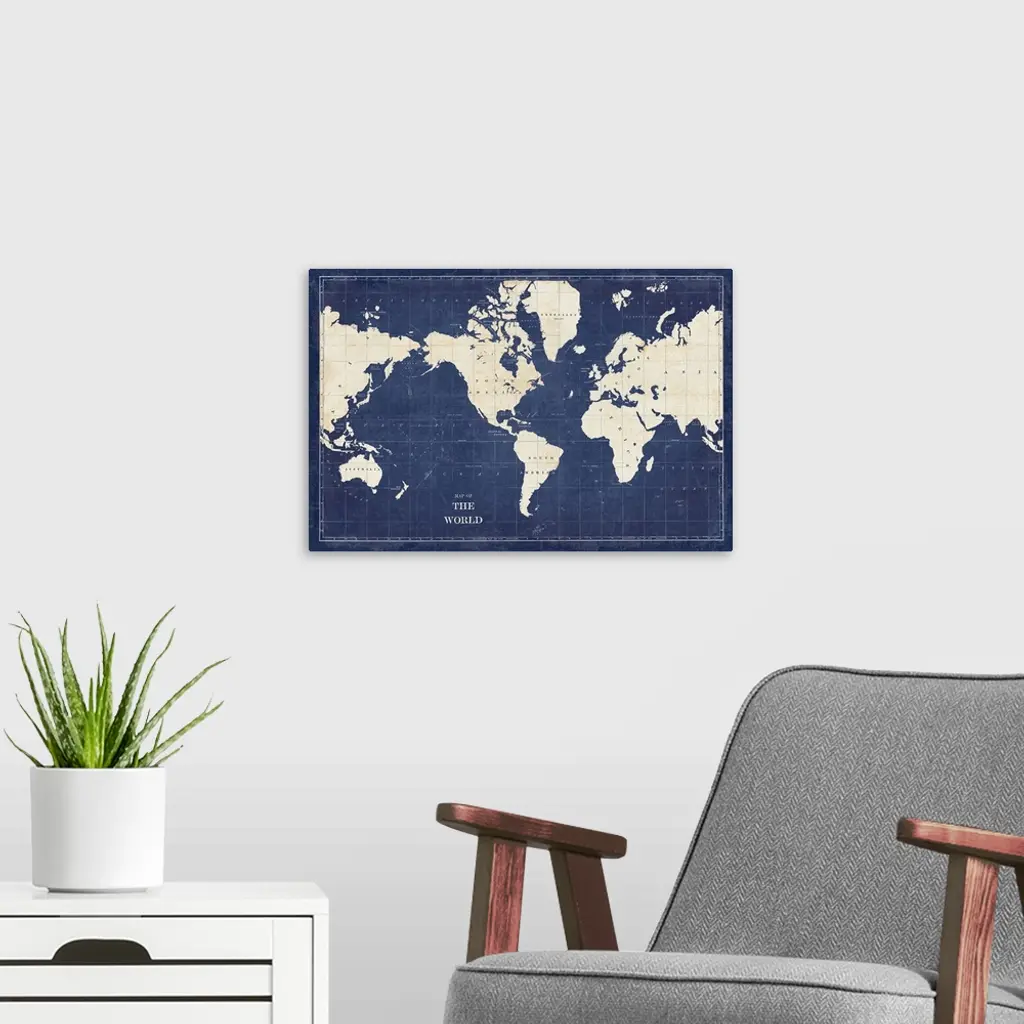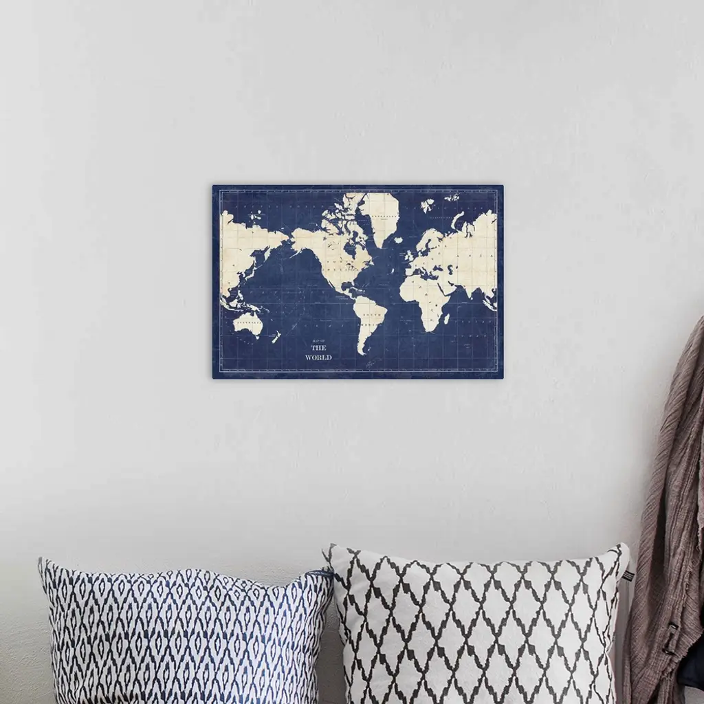 Blueprint World Map wall art for home and office decor. Discover canvas art prints, photos, mural, big canvas art and framed wall art in GreatBigCanvas.com's varied collections.
