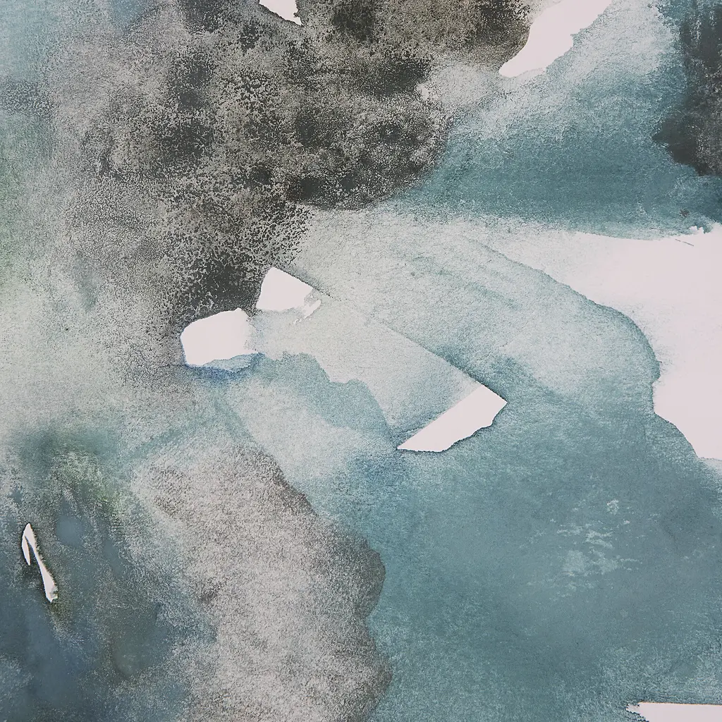 Capturing Remarkable Watercolor Composition, These Framed Prints Feature Abstract Images In Smoke Gray And Turquoise Blue. Each Print Is Accented By A Large White Mat, Black Inner Liner, And Champagne Gold Frame. Artwork By Terri Burris.