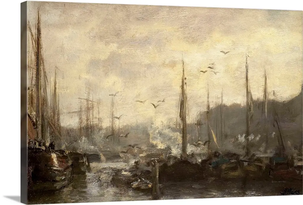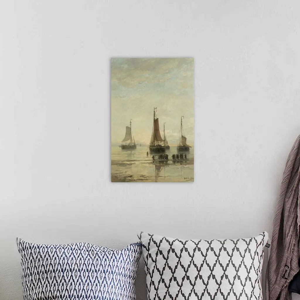 Bluff-Bowed Scheveningen Boats At Anchor, 1860-89, Dutch Oil Painting