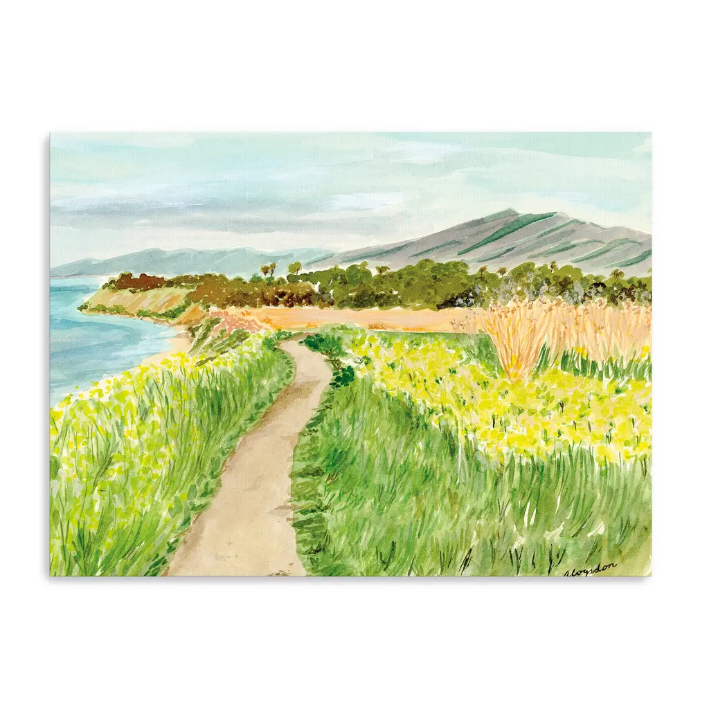 Celebrate the simplicity of the outdoors with this refined landscape canvas, showcasing soft greenery and warm earth tones in a balanced, minimalist design. The artwork's quiet charm invites reflection and relaxation. Our Gallery Wrap Canvas Prints are proudly assembled with high quality materials in California, USA. Each piece is printed on a thick, archival grade canvas using Giclee technology. It is then hand-stretched by our experienced artisans over solid wood bars, which will not warp over time. The final product is a piece personally crafted for you to confidently display on your wall. Care and Assembly: Ensure that the location of your piece has little to no exposure to heat, sunlight, and moisture. Wipe clean, only if needed. Each piece includes hanging hardware to hang on your wall horizontally.