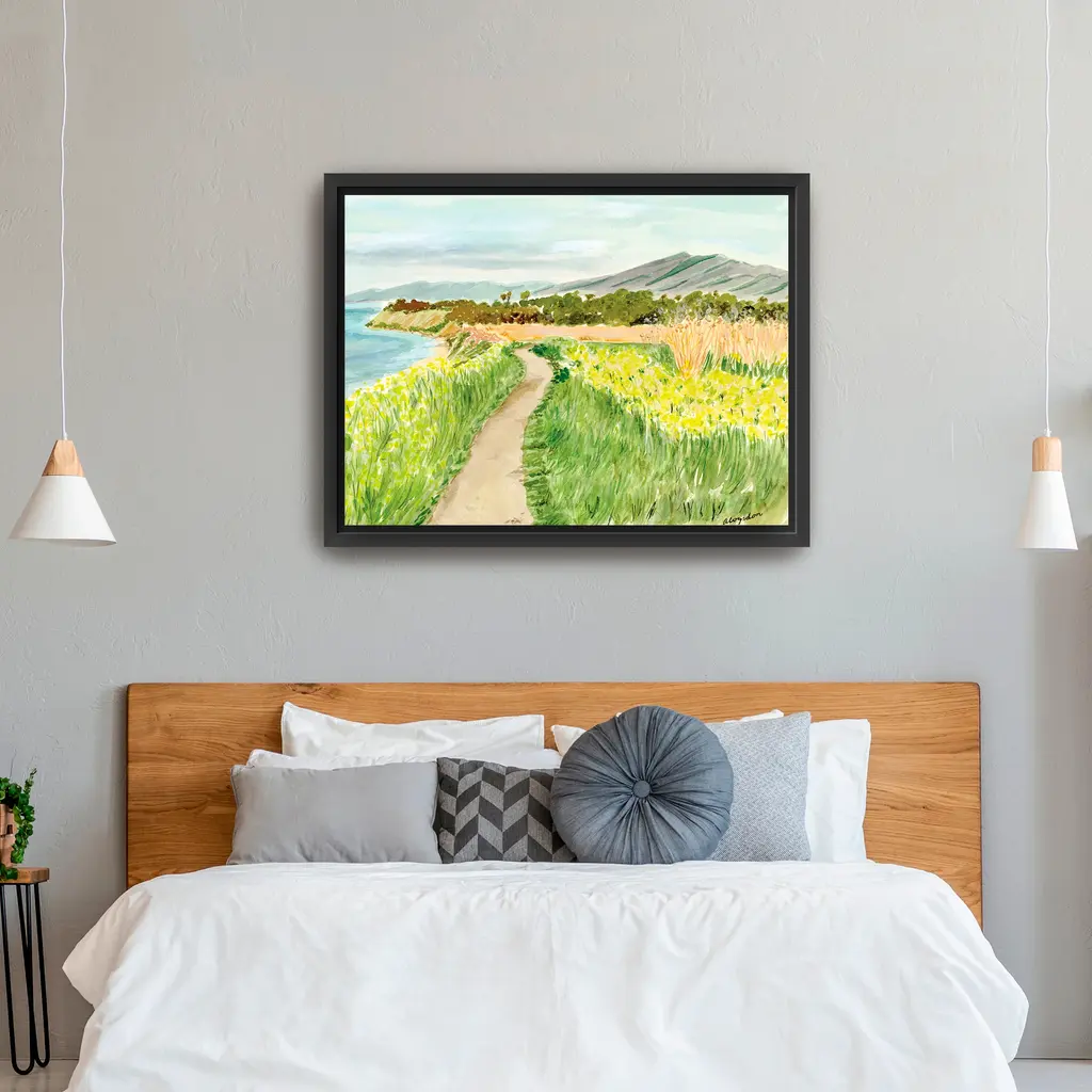 Celebrate the simplicity of the outdoors with this refined landscape canvas, showcasing soft greenery and warm earth tones in a balanced, minimalist design. The artwork's quiet charm invites reflection and relaxation. Our Gallery Wrap Canvas Prints are proudly assembled with high quality materials in California, USA. Each piece is printed on a thick, archival grade canvas using Giclee technology. It is then hand-stretched by our experienced artisans over solid wood bars, which will not warp over time. The final product is a piece personally crafted for you to confidently display on your wall. Care and Assembly: Ensure that the location of your piece has little to no exposure to heat, sunlight, and moisture. Wipe clean, only if needed. Each piece includes hanging hardware to hang on your wall horizontally.