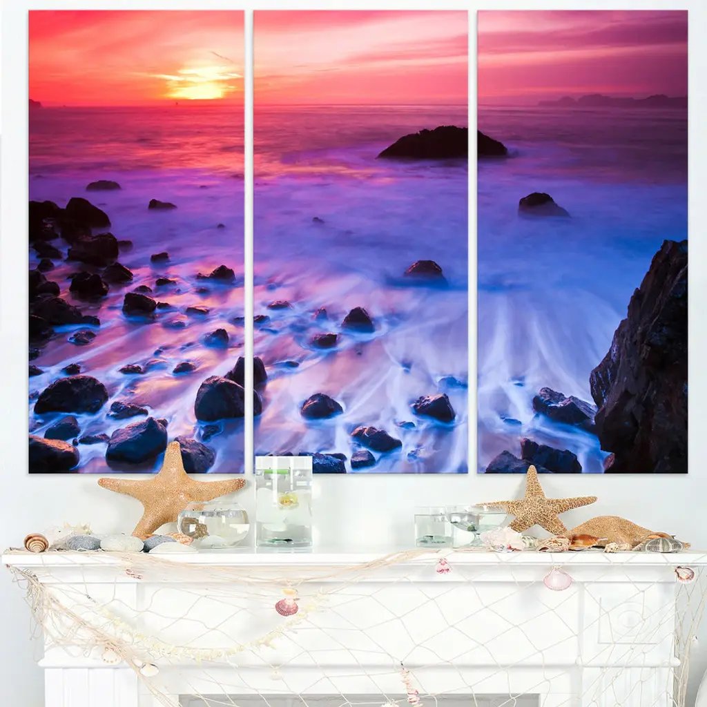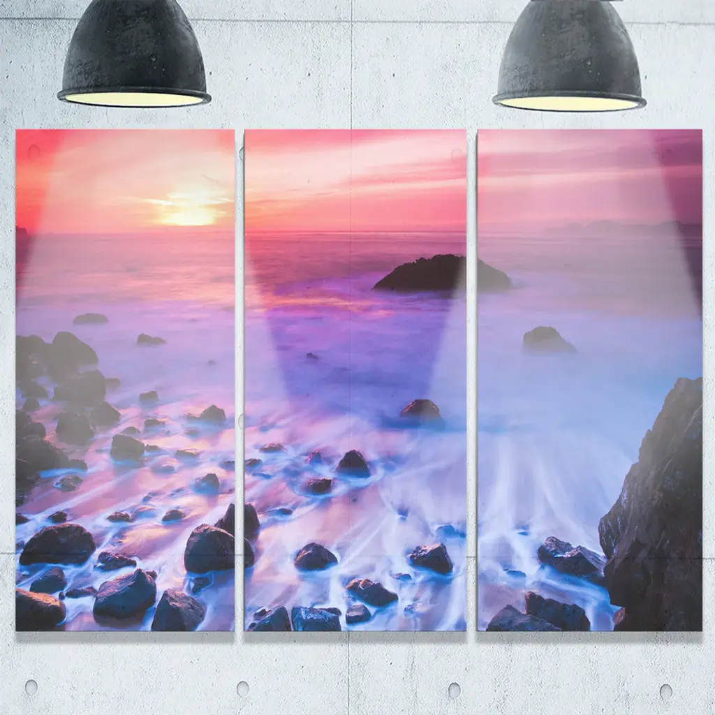 "Bluish Waters At Sunset Panorama" Metal Wall Art, 3 Panels, 36"x28"