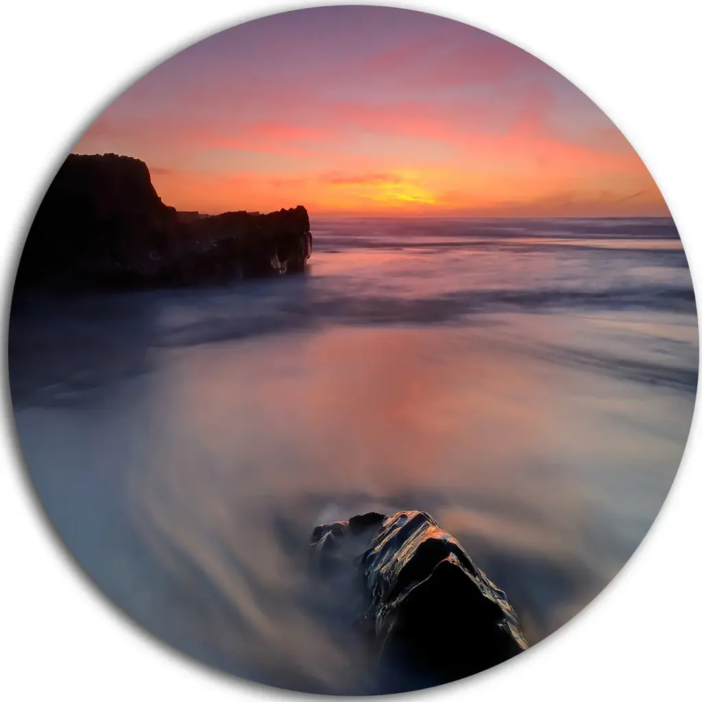 Bluish Waters At Sunset Panorama, Seashore Disc Metal Wall Art, 11"