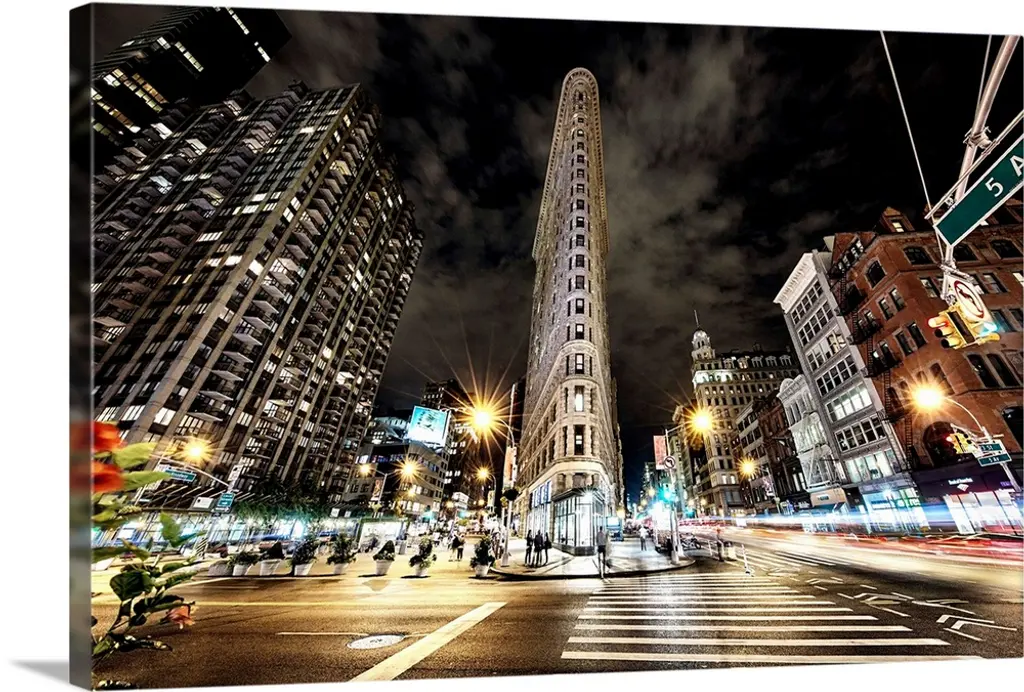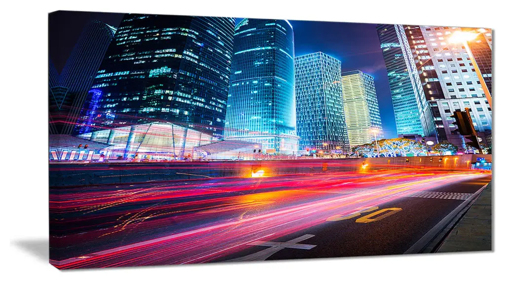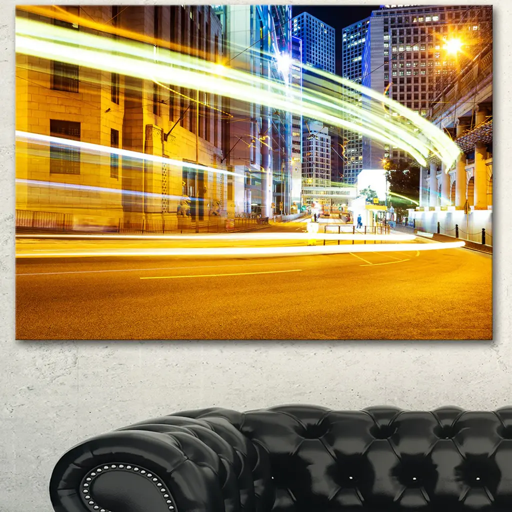 Blur Motion Traffic Trail In Modern City, Canvas Art Print, 60"x28"