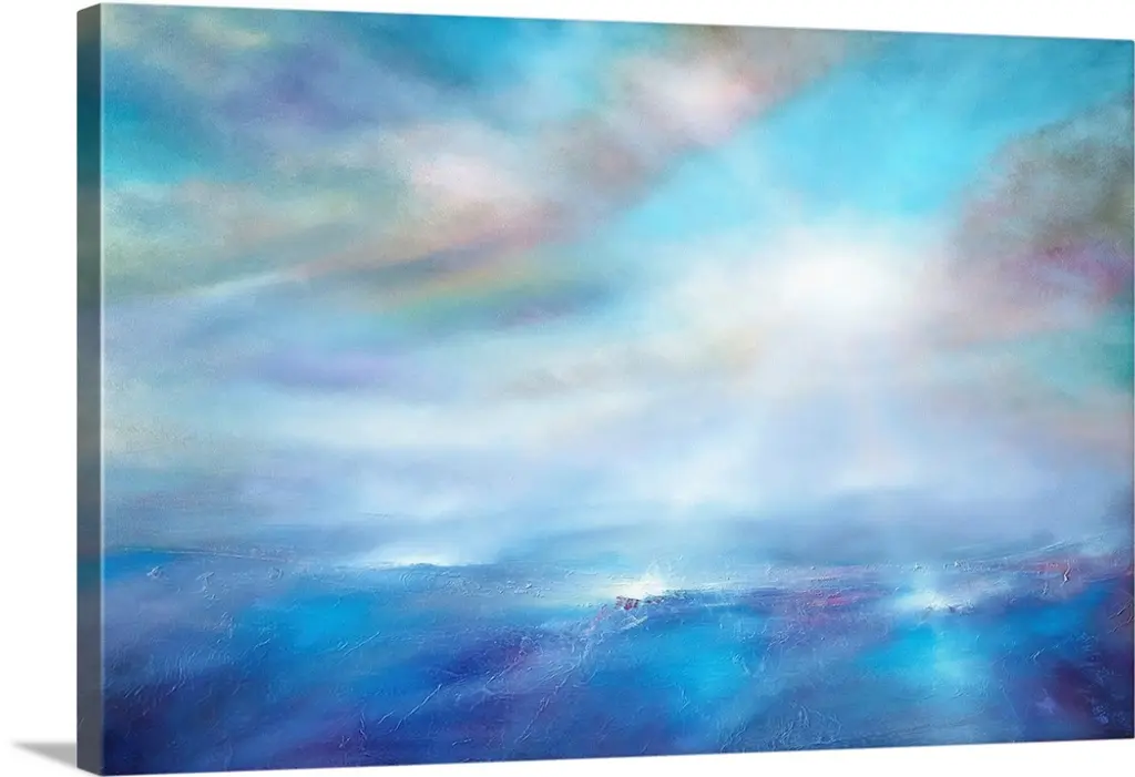 Blur Purple Sky With Stars, Oversized Abstract Canvas Art Print, 60x40