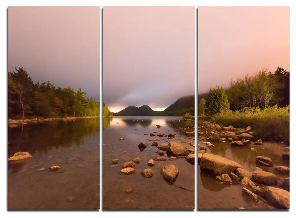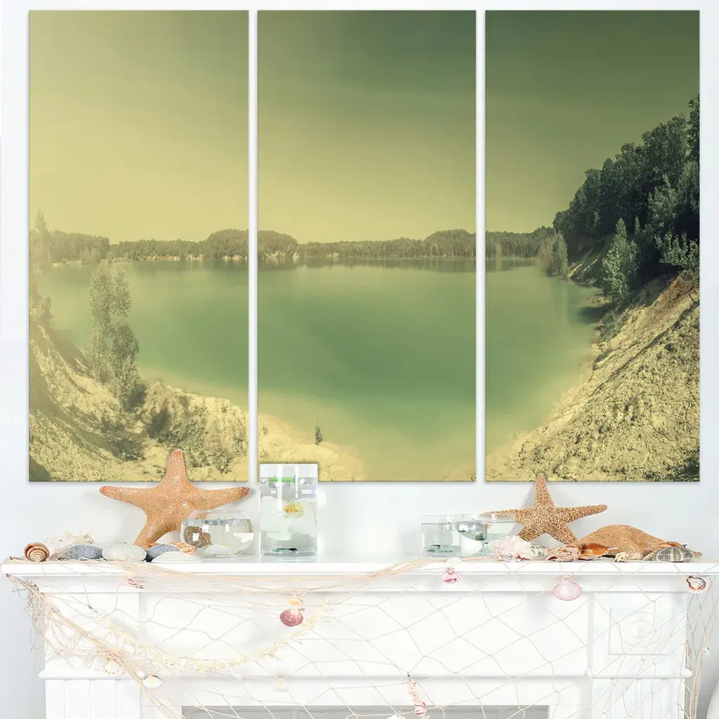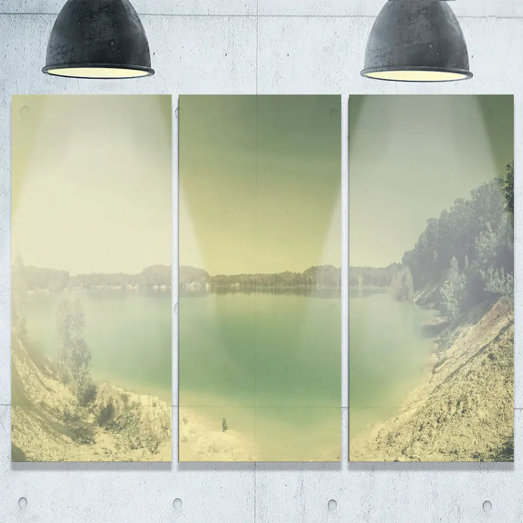 "Blurred Sea With Mountain Views" Metal Wall Art, 3 Panels, 36"x28"