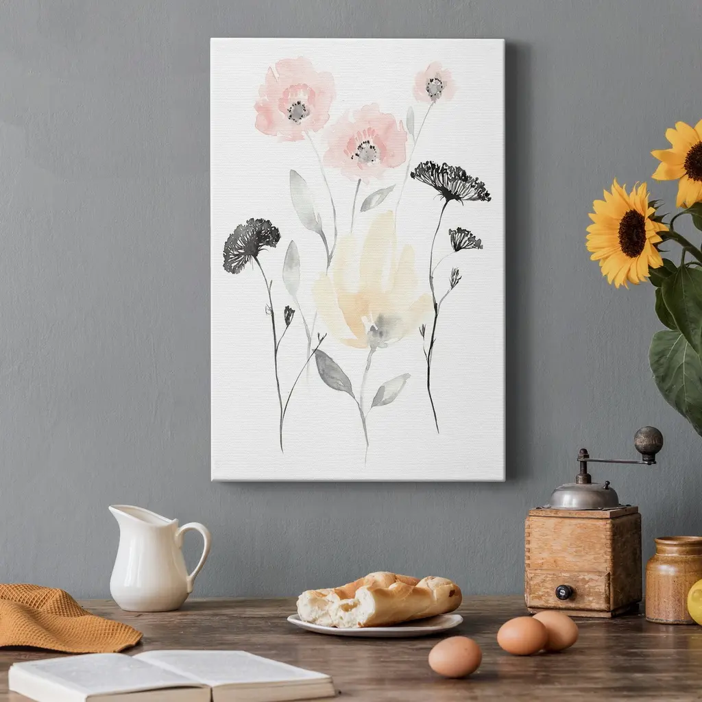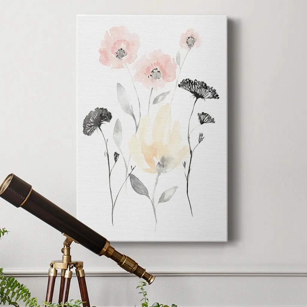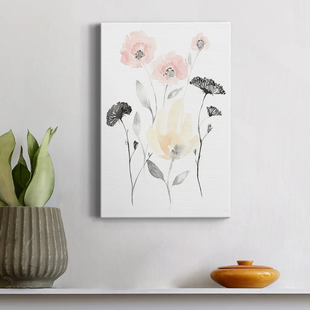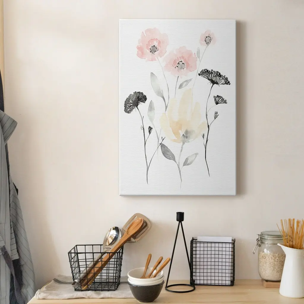 Blush & Black Wildflowers I Premium Gallery Wrapped Canvas - Ready To Hang - 8X12