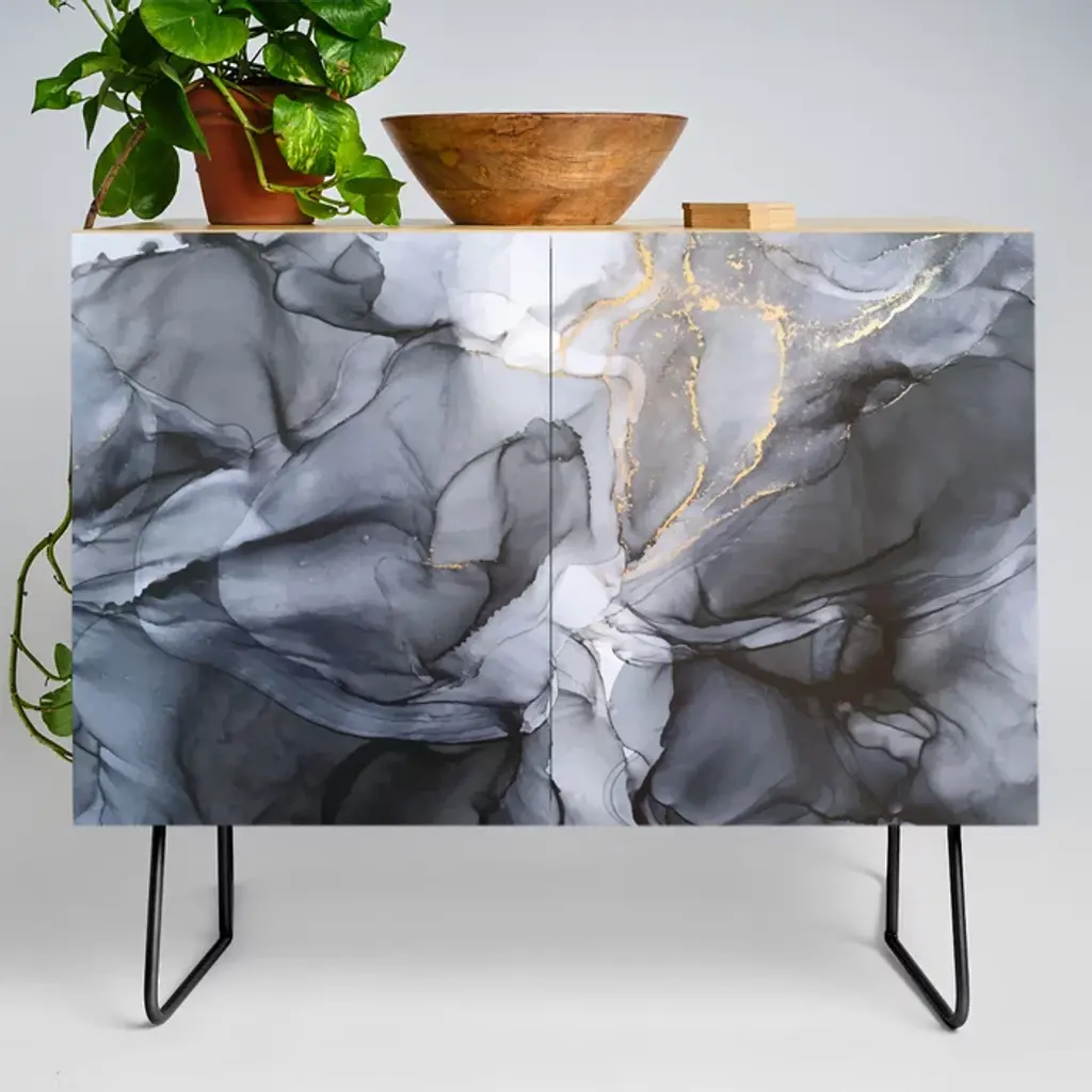 35.5" x 17.5" x 30" (H) including legsSteel legs available in gold or blackInterior shelf is adjustableWipe clean with damp clothAssembly requiredEvery order is made just for youTips for Assembling Your CredenzaHere’s what you’ll need beforehand (not included with your purchase): a Phillips head screwdriver and a partner. A ratchet and 7/16" socket is helpful but not required since we include a wrench.Read the instructions. We include a detailed, step-by-step guide in your box. Make sure to follow the instructions so your credenza looks perfect.SHIPPING: Items are made to order and typically ship within 3-4 business days. Click here for more information about delivery options.Furniture sales are final. Click here for more information on returns.