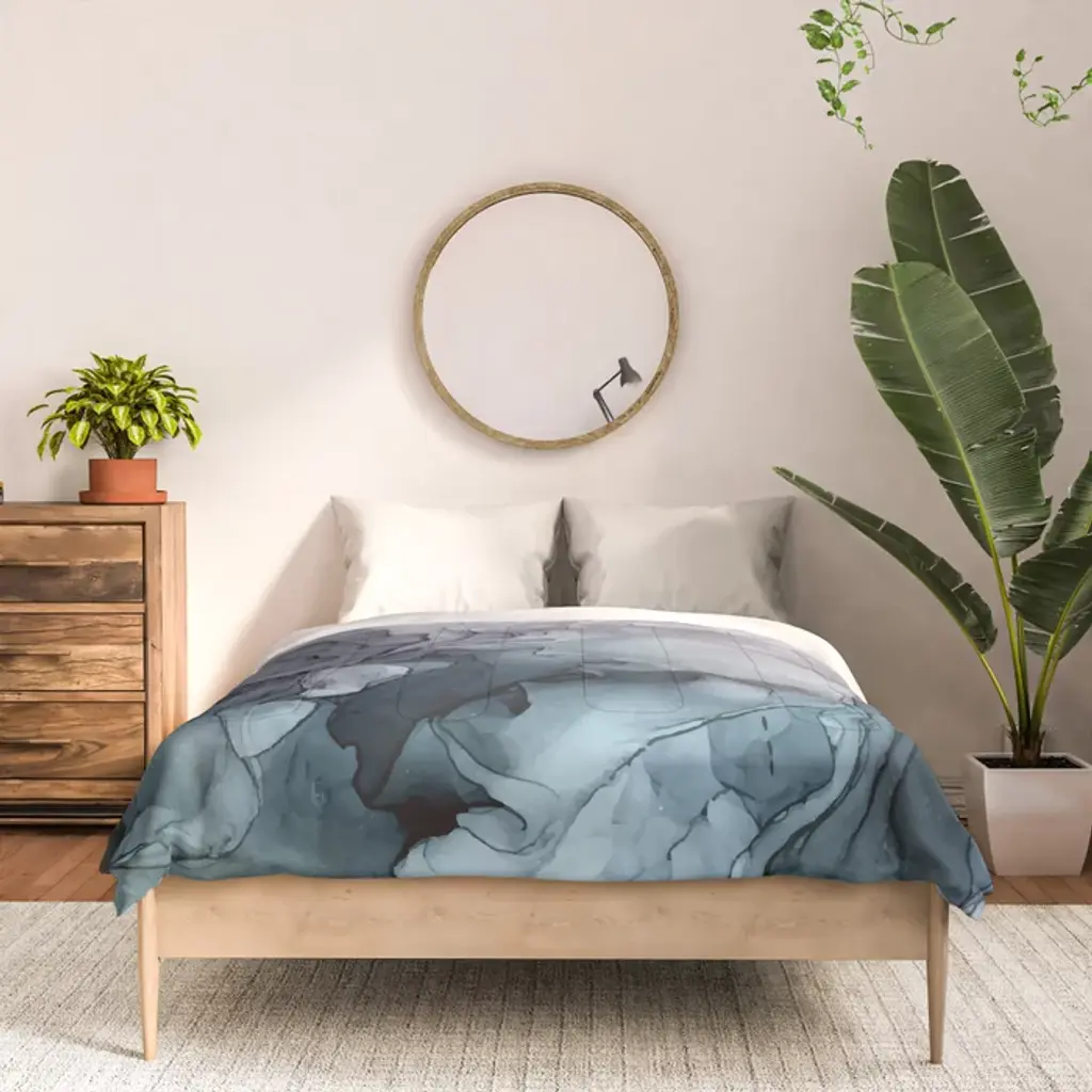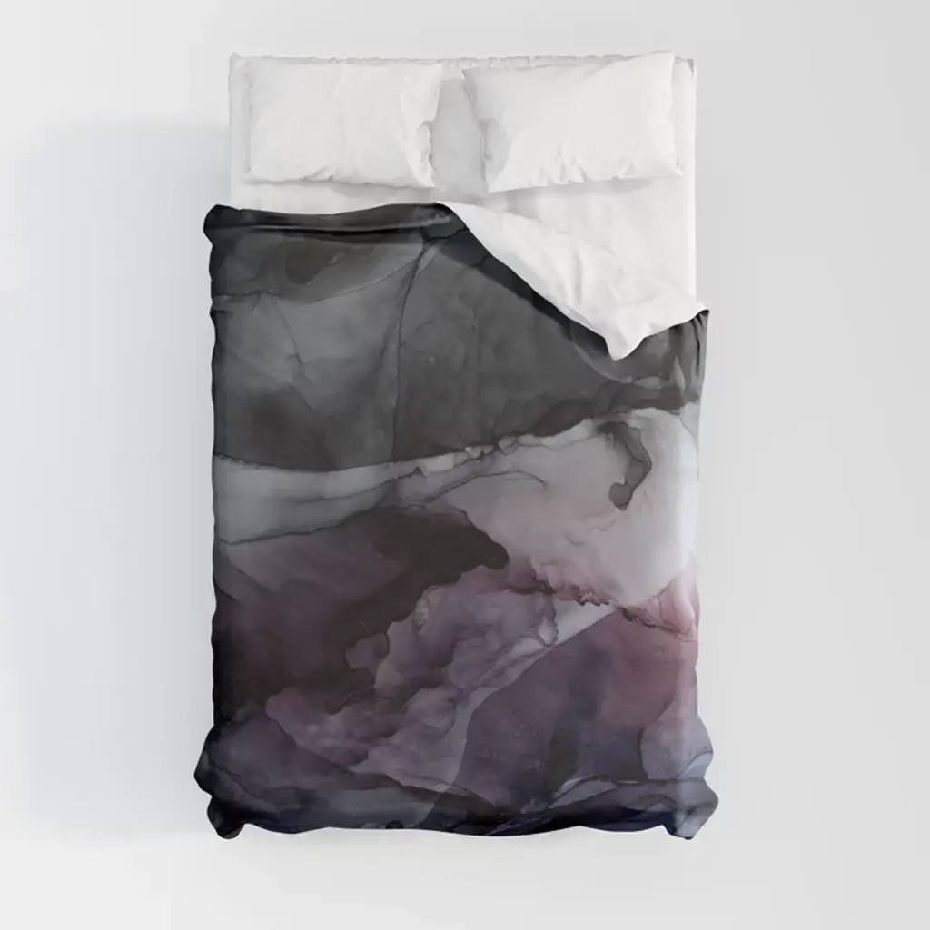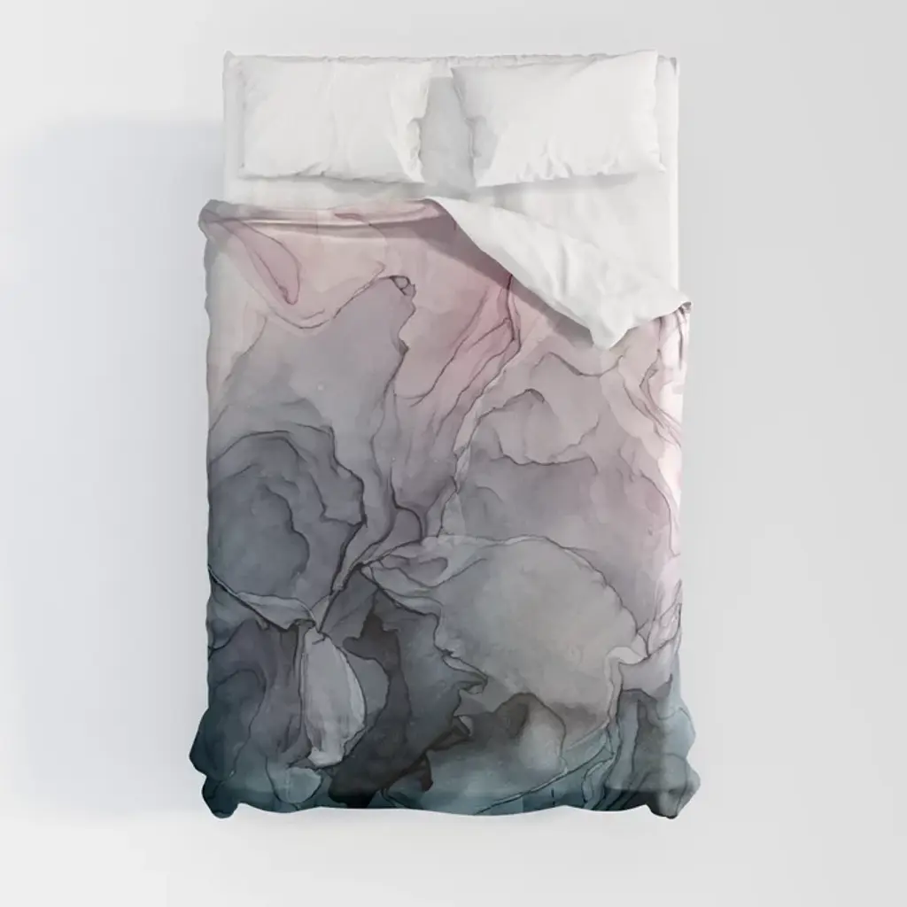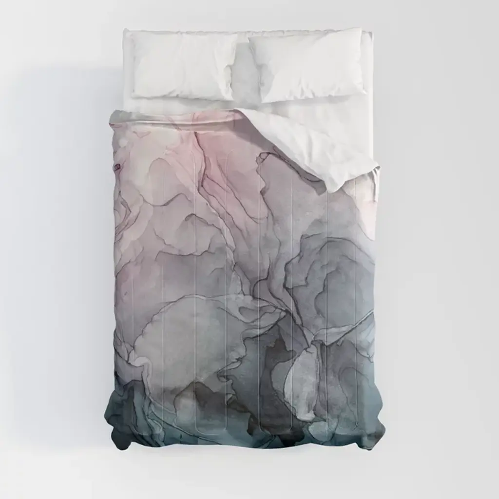 Blush And Payne's Grey Flowing Abstract Painting Comforter