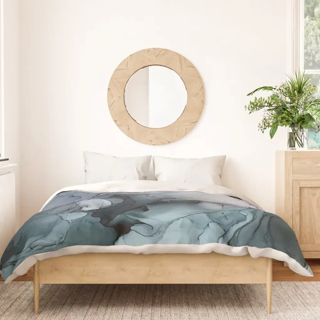 Blush And Payne's Grey Flowing Abstract Painting Duvet Cover
