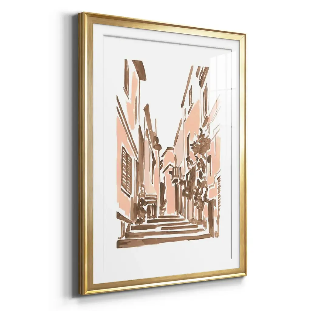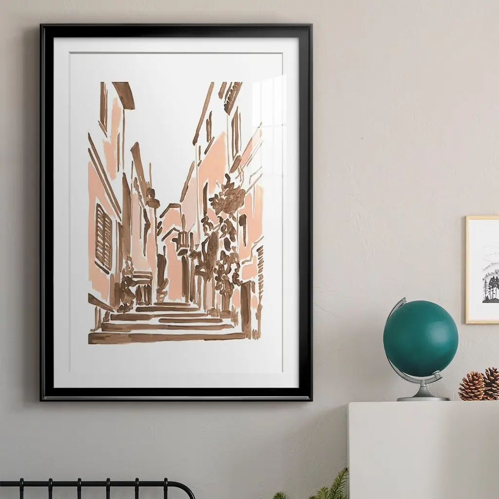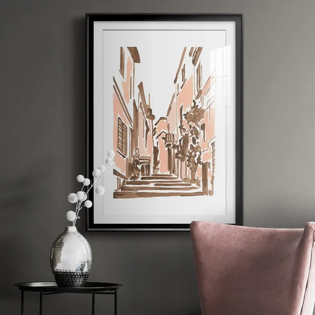 Blush Architecture Study I Premium Framed Print - Ready to Hang A Premium Framed Print created to last. Framed in distressed wood and available in an array of sizes and colors Featuring a beveled a solid wood stretcher bar, each piece comes ready to hand 4 SIZES AVAILABLE 30.5''X42.5'' - Overall Size 26.5'X36.5'' - Overall Size 22.5''x30.5'' - Overall Size 18.5''x24.5'' - Overall Size Each piece is made to order. Each piece comes with hanging hardware. Made in the USA Ready to Hang Giclee Paper Print Acrylic Glass Beveled Matt Board