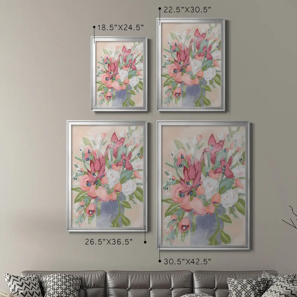 Blush Array I Premium Framed Print - Ready to Hang A Premium Framed Print created to last. Framed in distressed wood and available in an array of sizes and colors Featuring a beveled a solid wood stretcher bar, each piece comes ready to hand 4 SIZES AVAILABLE 30.5''X42.5'' - Overall Size 26.5'X36.5'' - Overall Size 22.5''x30.5'' - Overall Size 18.5''x24.5'' - Overall Size Each piece is made to order. Each piece comes with hanging hardware. Made in the USA Ready to Hang
