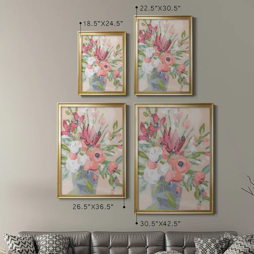 Blush Array II Premium Framed Print - Ready to Hang A Premium Framed Print created to last. Framed in distressed wood and available in an array of sizes and colors Featuring a beveled a solid wood stretcher bar, each piece comes ready to hand 4 SIZES AVAILABLE 30.5''X42.5'' - Overall Size 26.5'X36.5'' - Overall Size 22.5''x30.5'' - Overall Size 18.5''x24.5'' - Overall Size Each piece is made to order. Each piece comes with hanging hardware. Made in the USA Ready to Hang