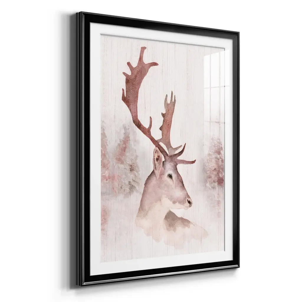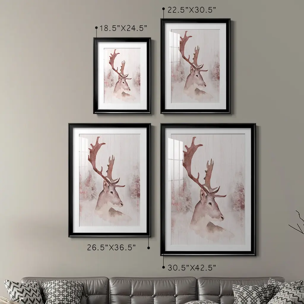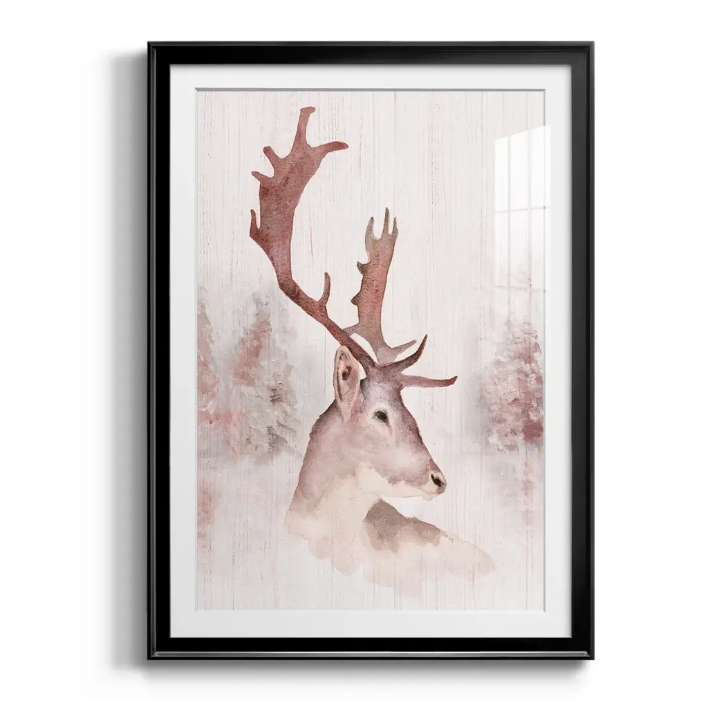 Blush Deer Premium Framed Print - Ready to Hang A Premium Framed Print created to last. Framed in distressed wood and available in an array of sizes and colors Featuring a beveled a solid wood stretcher bar, each piece comes ready to hand 4 SIZES AVAILABLE 30.5''X42.5'' - Overall Size 26.5'X36.5'' - Overall Size 22.5''x30.5'' - Overall Size 18.5''x24.5'' - Overall Size Each piece is made to order. Each piece comes with hanging hardware. Made in the USA Ready to Hang Giclee Paper Print Acrylic Glass Beveled Matt Board