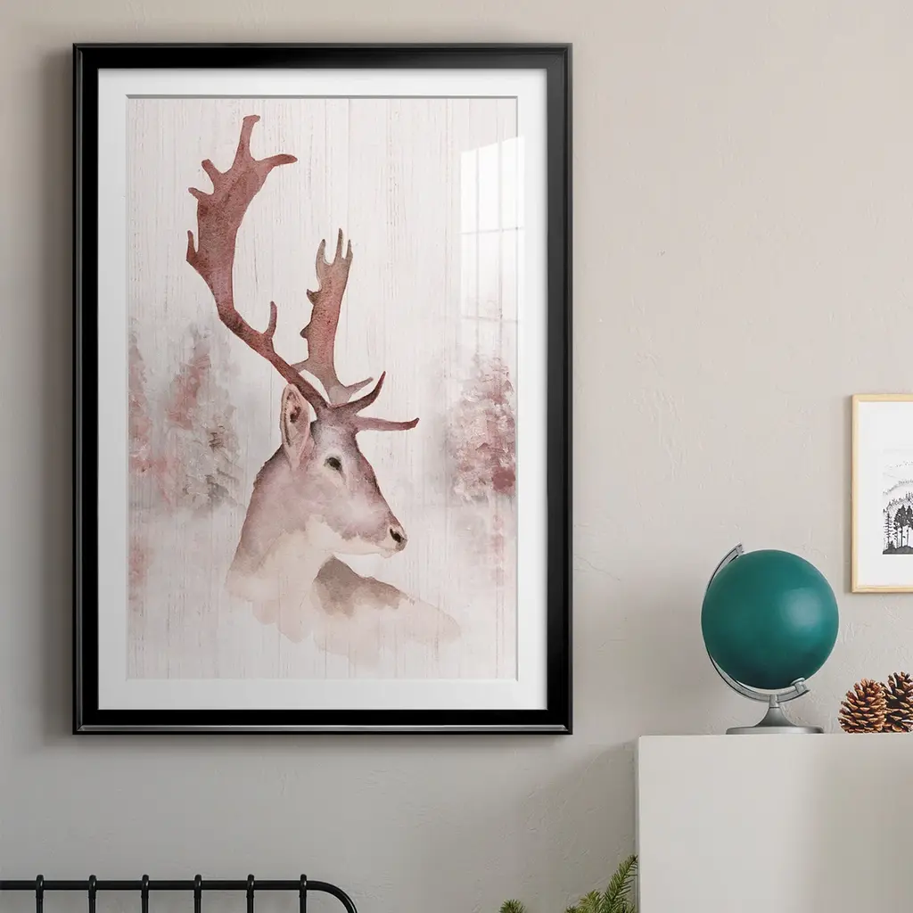 Blush Deer Premium Framed Print - Ready to Hang A Premium Framed Print created to last. Framed in distressed wood and available in an array of sizes and colors Featuring a beveled a solid wood stretcher bar, each piece comes ready to hand 4 SIZES AVAILABLE 30.5''X42.5'' - Overall Size 26.5'X36.5'' - Overall Size 22.5''x30.5'' - Overall Size 18.5''x24.5'' - Overall Size Each piece is made to order. Each piece comes with hanging hardware. Made in the USA Ready to Hang Giclee Paper Print Acrylic Glass Beveled Matt Board
