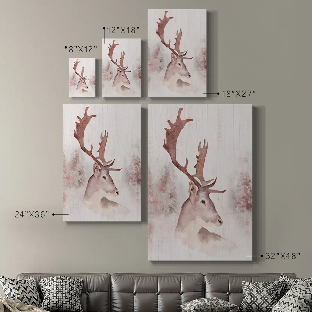 Blush Deer Premium Gallery Wrapped Canvas - Ready to Hang A premium hand stretched gallery wrapped canvas print created to last. Featuring a beveled a solid wood stretcher bar, each piece comes ready to hand 6 SIZES AVAILABLE 8''X12'' - Overall Size 12''X18'' - Overall Size 18''X27'' - Overall Size 24''x36'' - Overall Size 32''x48'' - Overall Size 40''x60'' - Overall Size Each piece is made to order. Built to Last Each piece comes ready to hang Solid wood stretcher Fade and Water resistant Made domestically