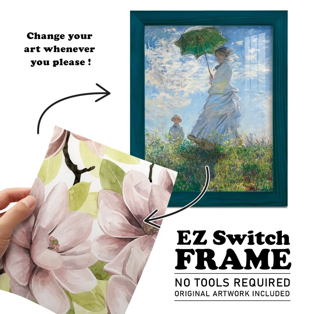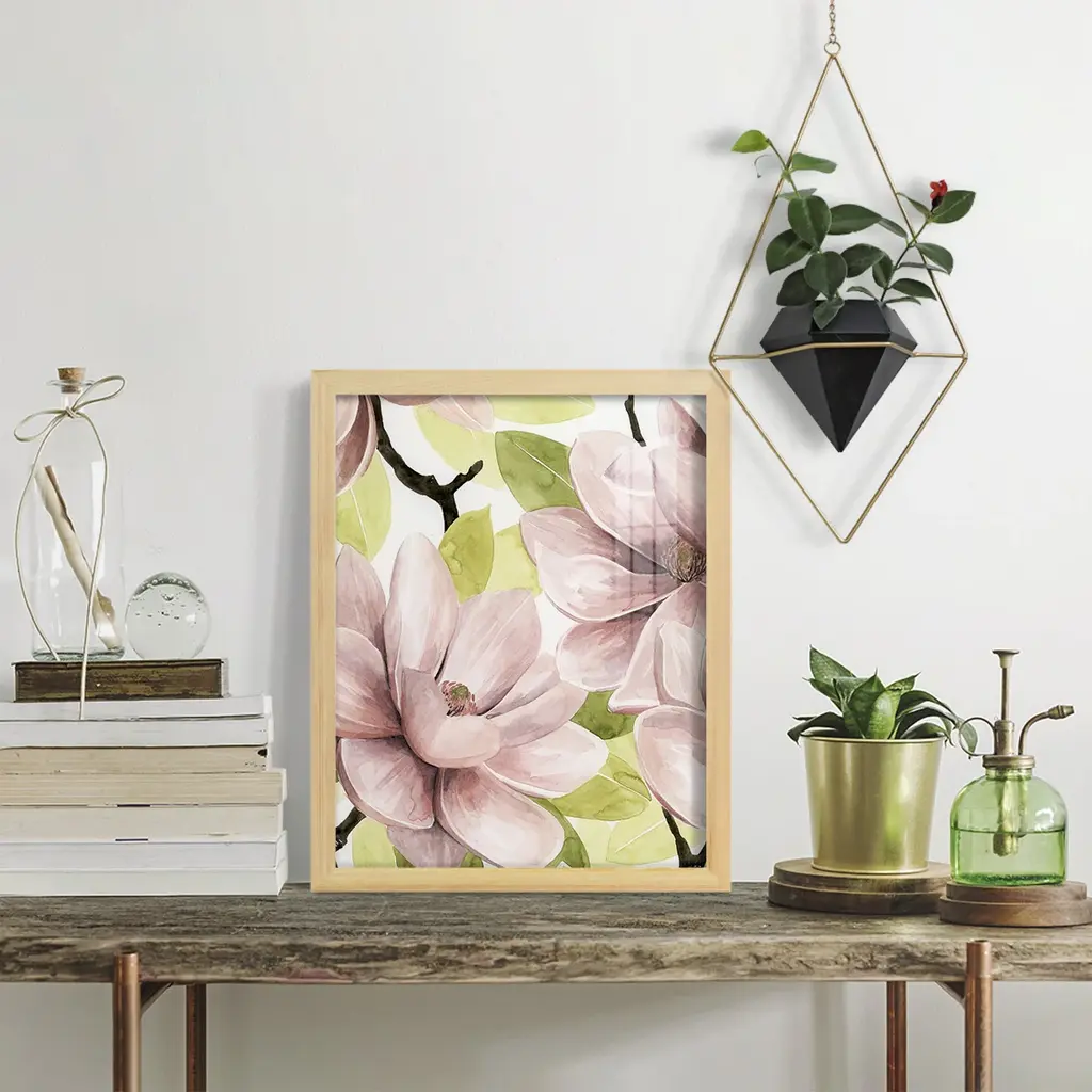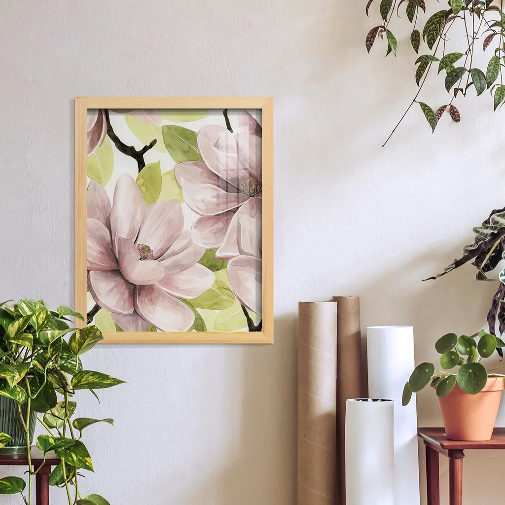 Blush Magnolia I -EZ SWITCH Framed Print w/glass-Cherry Red A delightful, framed print. Featuring a solid wood frame with real wood glass. This premium print is giclee quality. In addition, every frame features a removable back and table top stand. This allows you to change your art in the future or to just stand the art on a table for a new look. We are sure you'll enjoy our new series of EZ SWITCH Framed Art. Solid Wood Frame Real Glass Removable / Replaceable Art Built in Tabletop Stand Sizes range from 4x6 up to 12x15 - buy just one or pair them up as sets as you see fit.