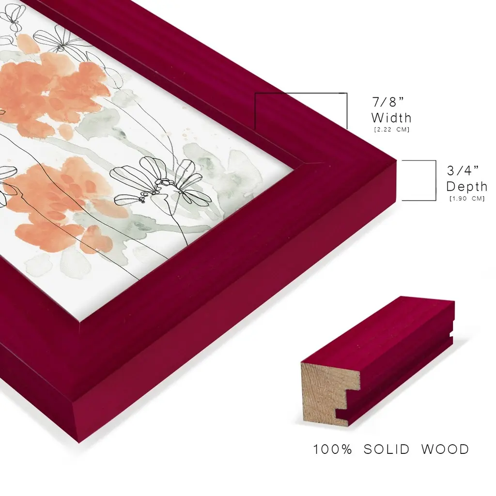 Blush Peonies II -EZ SWITCH Framed Print w/glass-Cherry Red A delightful, framed print. Featuring a solid wood frame with real wood glass. This premium print is giclee quality. In addition, every frame features a removable back and table top stand. This allows you to change your art in the future or to just stand the art on a table for a new look. We are sure you'll enjoy our new series of EZ SWITCH Framed Art. Solid Wood Frame Real Glass Removable / Replaceable Art Built in Tabletop Stand Sizes range from 4x6 up to 12x15 - buy just one or pair them up as sets as you see fit.