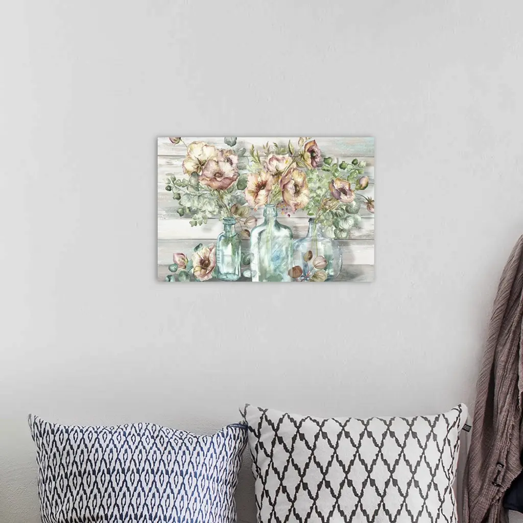 Blush Poppies And Eucalyptus In Bottles Landscape