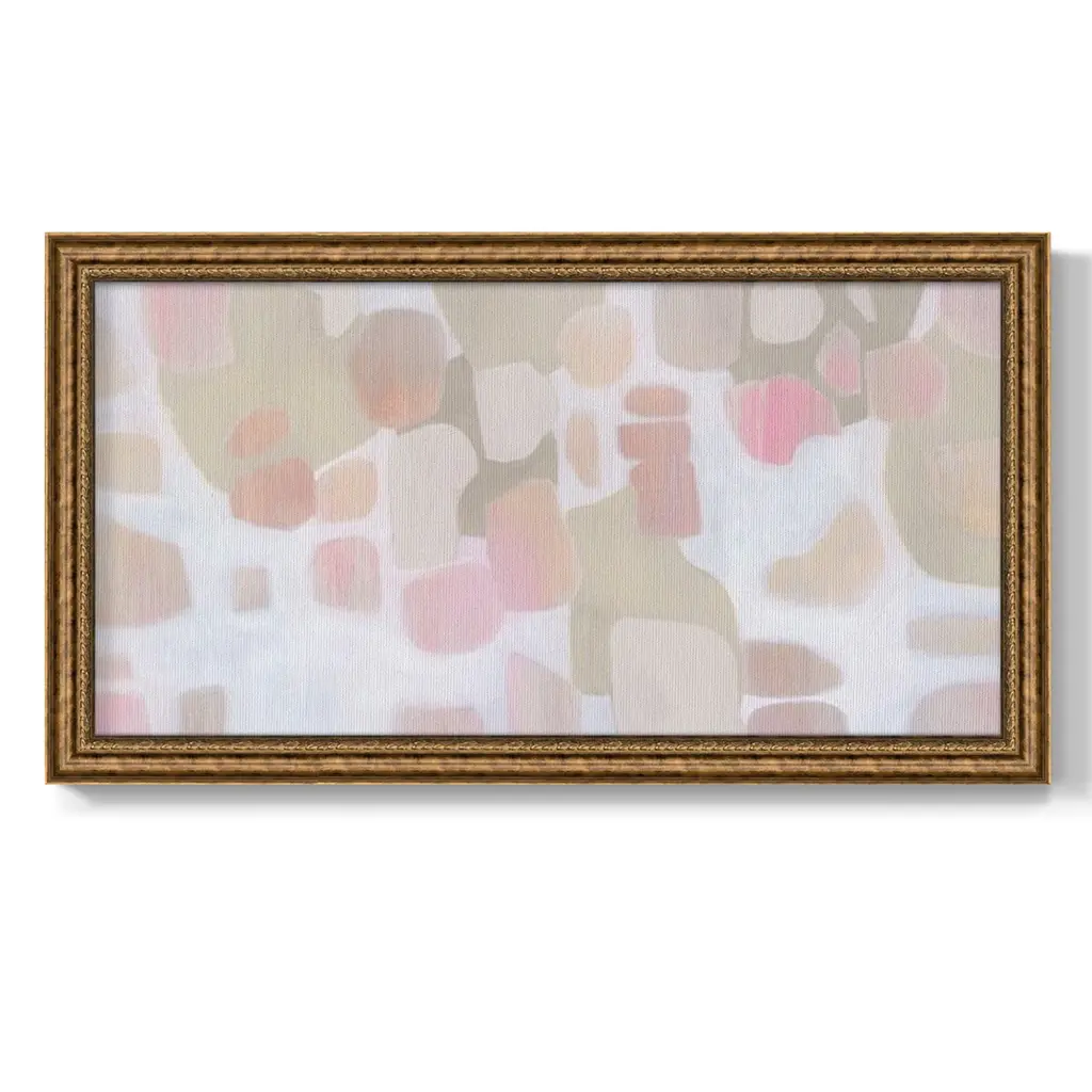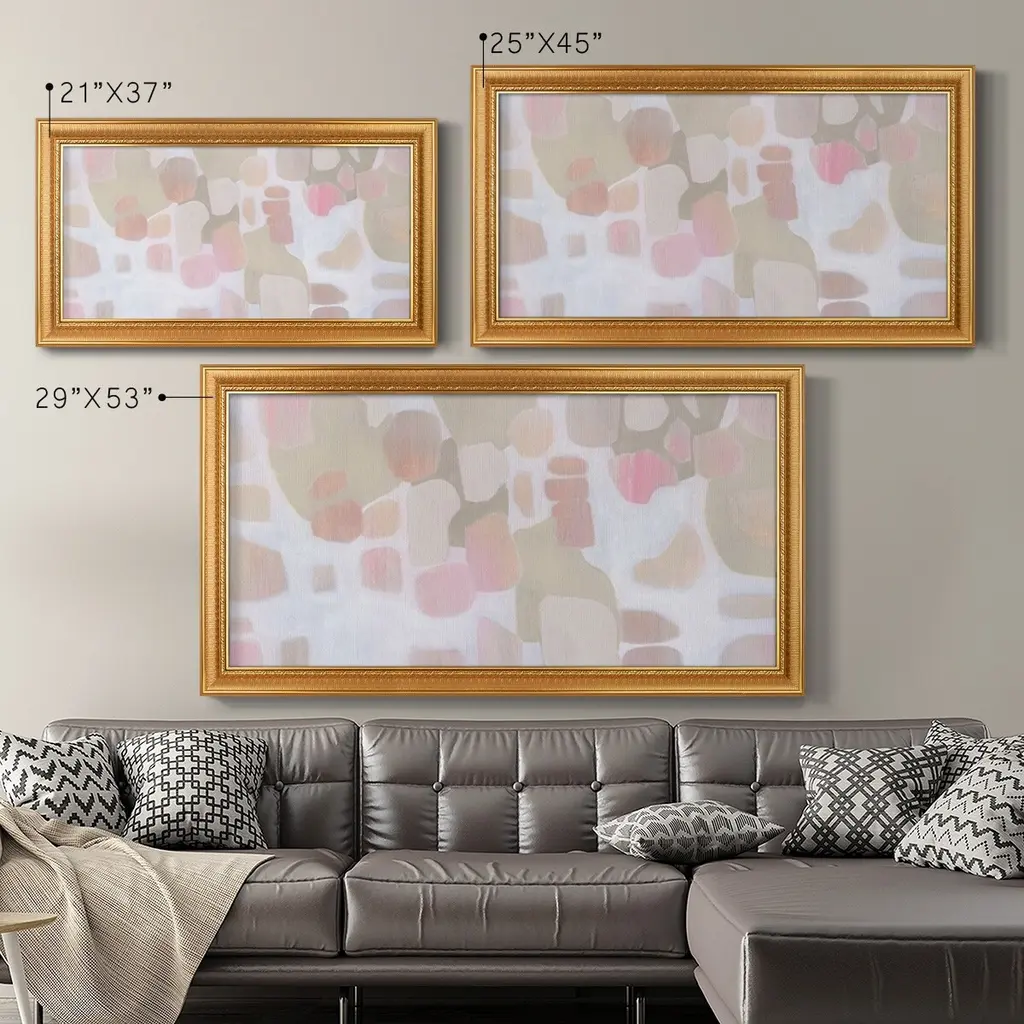 Blush Rock V Premium Framed Canvas- Ready to Hang A Premium Framed Canvas created to last. Framed in distressed wood and available in an array of sizes and colors Featuring a beveled a solid wood stretcher bar, each piece comes ready to hand 3 SIZES AVAILABLE 21''X37'' - Overall Size 25''X45'' - Overall Size 29''x53'' - Overall Size Each piece is made to order. Each piece comes with hanging hardware. Made in the USA Ready to Hang Giclee Paper Print Acrylic Glass Beveled Matt Board