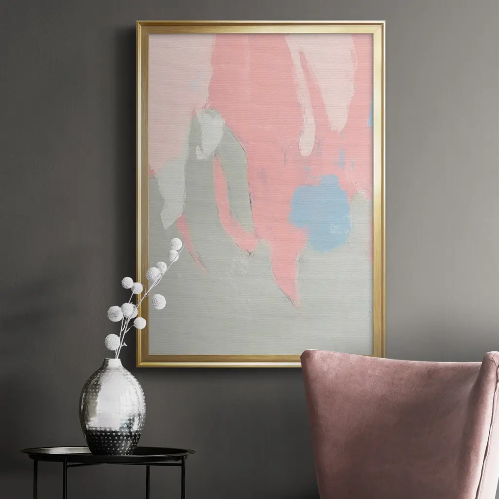Blushing Abstract I Premium Framed Print - Ready to Hang A Premium Framed Print created to last. Framed in distressed wood and available in an array of sizes and colors Featuring a beveled a solid wood stretcher bar, each piece comes ready to hand 4 SIZES AVAILABLE 30.5''X42.5'' - Overall Size 26.5'X36.5'' - Overall Size 22.5''x30.5'' - Overall Size 18.5''x24.5'' - Overall Size Each piece is made to order. Each piece comes with hanging hardware. Made in the USA Ready to Hang