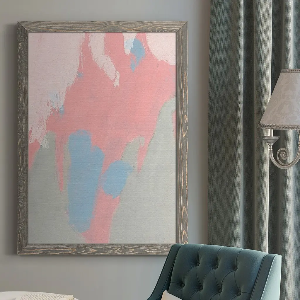 Blushing Abstract II Premium Framed Print - Ready to Hang A Premium Framed Print created to last. Framed in distressed wood and available in an array of sizes and colors Featuring a beveled a solid wood stretcher bar, each piece comes ready to hand 4 SIZES AVAILABLE 30.5''X42.5'' - Overall Size 26.5'X36.5'' - Overall Size 22.5''x30.5'' - Overall Size 18.5''x24.5'' - Overall Size Each piece is made to order. Each piece comes with hanging hardware. Made in the USA Ready to Hang