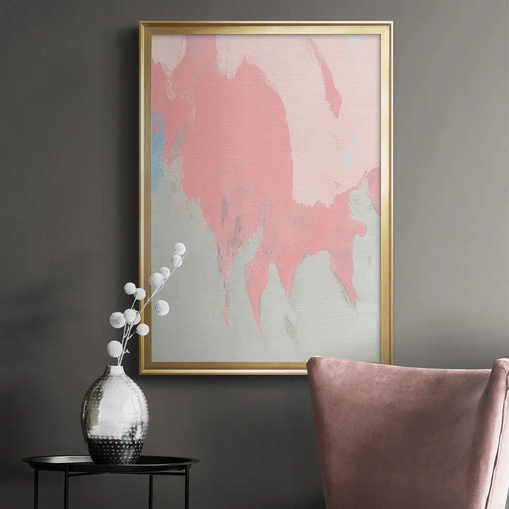 Blushing Abstract II Premium Framed Print - Ready to Hang A Premium Framed Print created to last. Framed in distressed wood and available in an array of sizes and colors Featuring a beveled a solid wood stretcher bar, each piece comes ready to hand 4 SIZES AVAILABLE 30.5''X42.5'' - Overall Size 26.5'X36.5'' - Overall Size 22.5''x30.5'' - Overall Size 18.5''x24.5'' - Overall Size Each piece is made to order. Each piece comes with hanging hardware. Made in the USA Ready to Hang