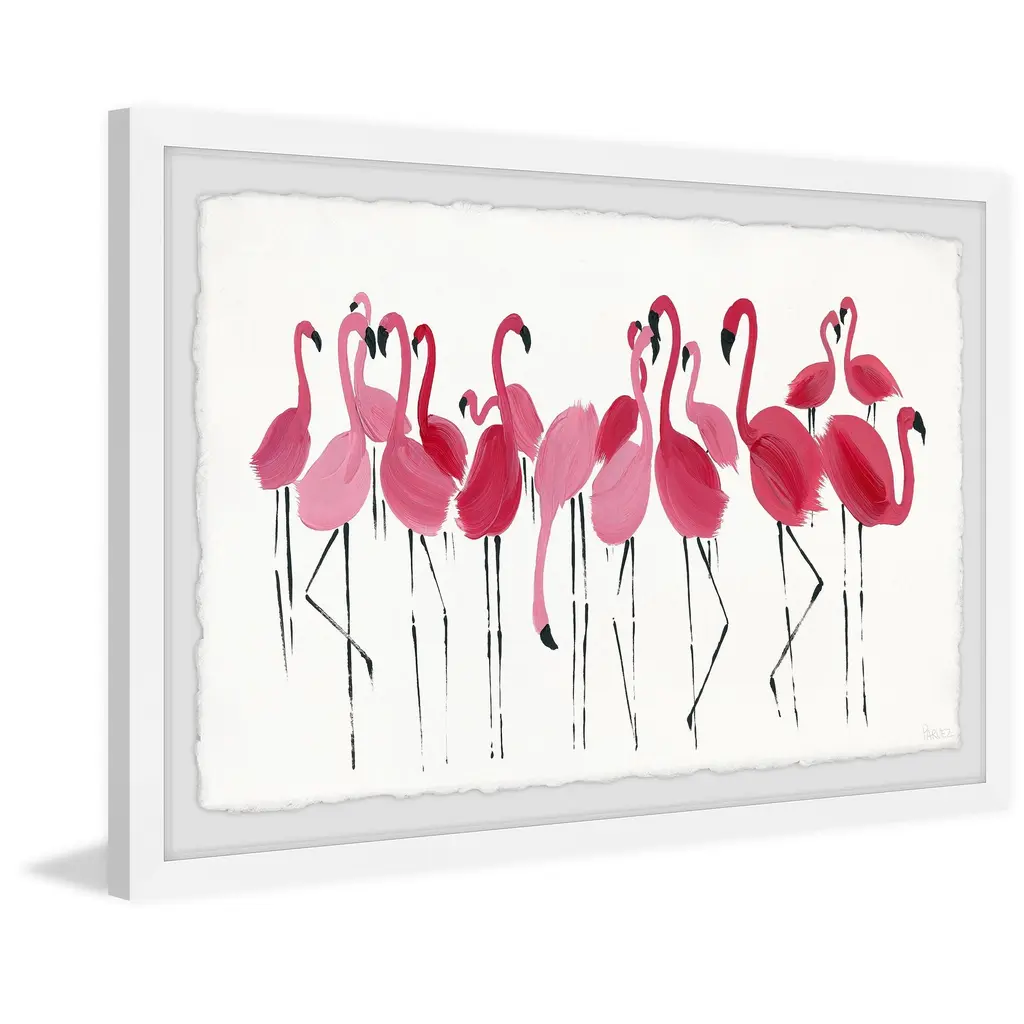 'Blushing Flamingos' Framed Painting Print - Multi-Color - 45 X 30