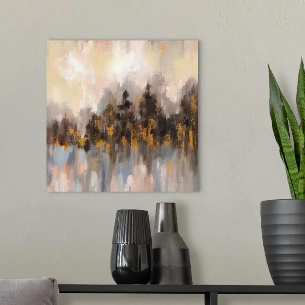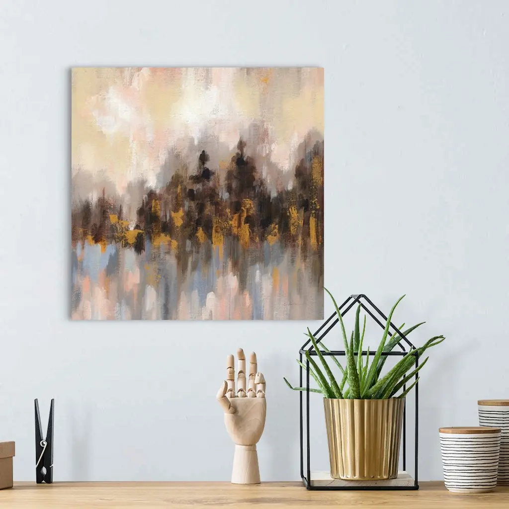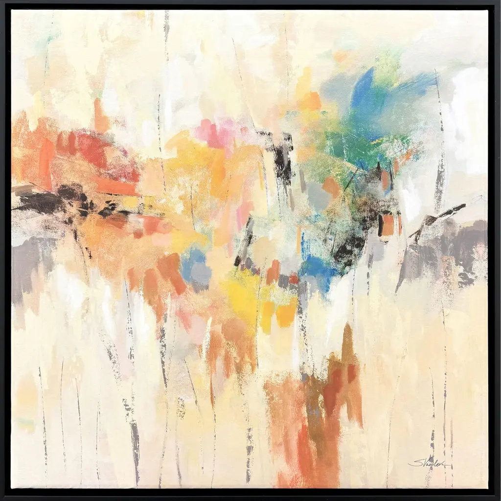 Contemporary artwork featuring short vertical brush strokes to create an abstract forest.