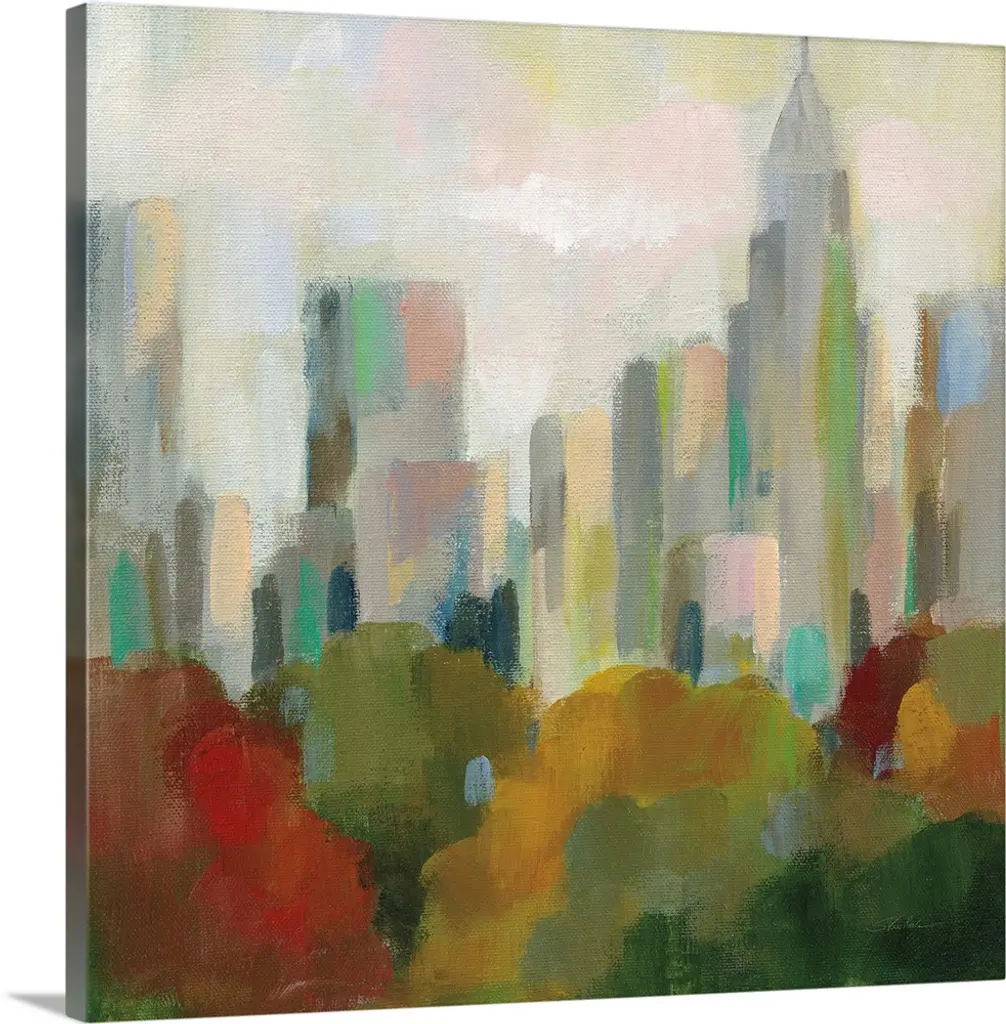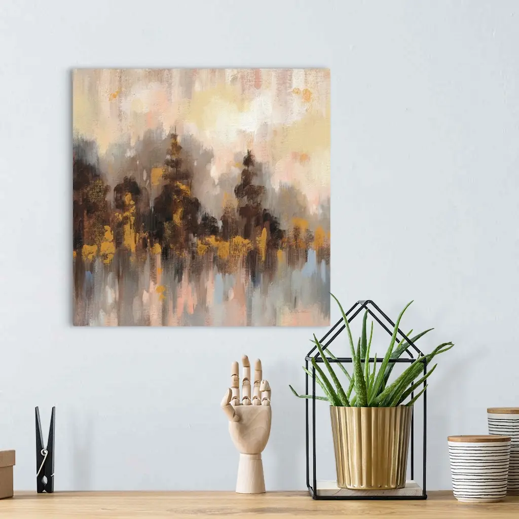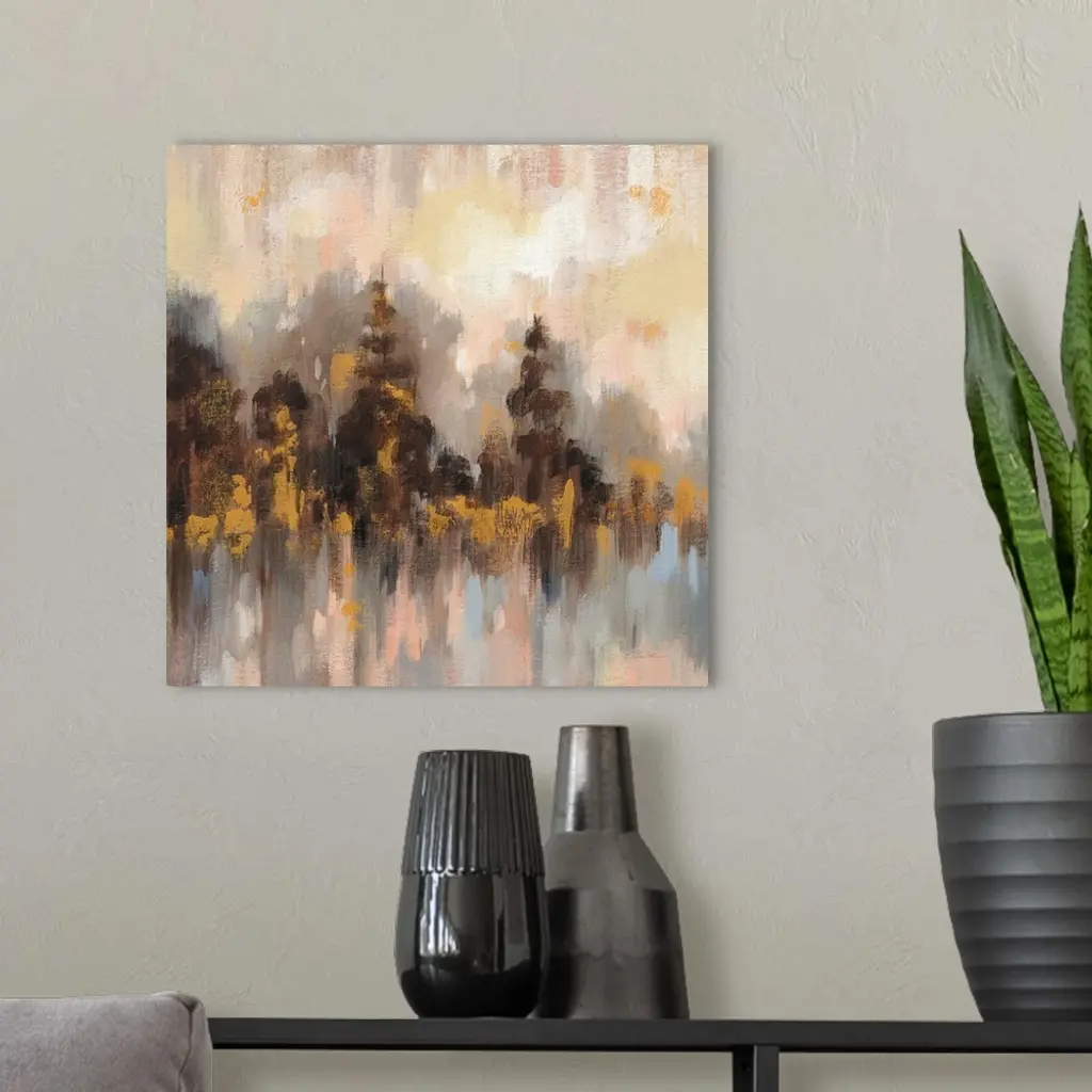 Contemporary artwork featuring short vertical brush strokes to create an abstract forest.