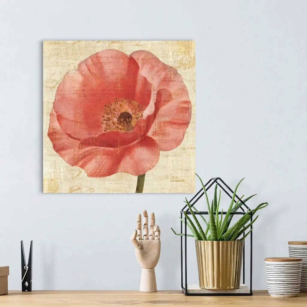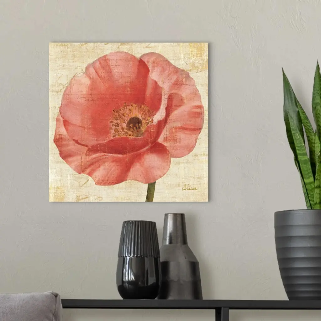 Contemporary artwork of a blooming pink flower close-up in the frame of the image.