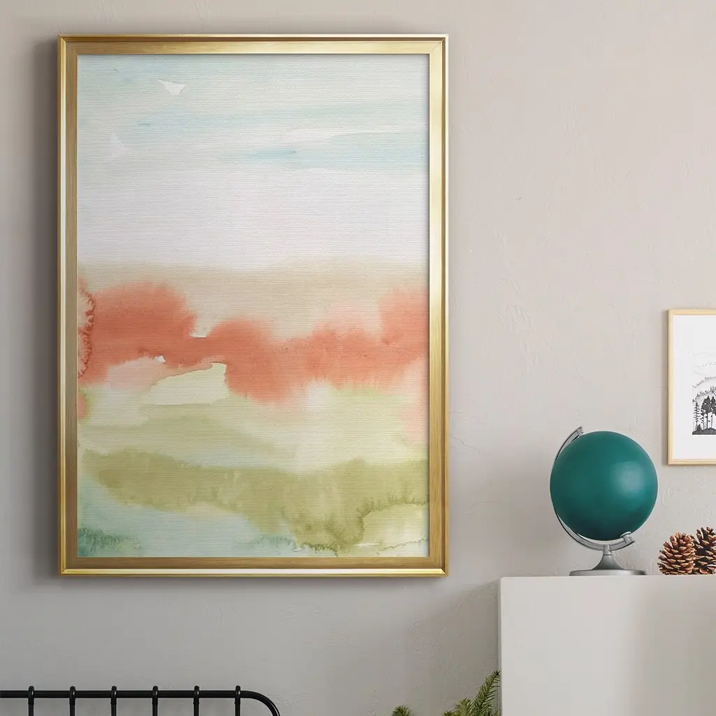 Blushing Sunrise I Premium Framed Print - Ready to Hang A Premium Framed Print created to last. Framed in distressed wood and available in an array of sizes and colors Featuring a beveled a solid wood stretcher bar, each piece comes ready to hand 4 SIZES AVAILABLE 30.5''X42.5'' - Overall Size 26.5'X36.5'' - Overall Size 22.5''x30.5'' - Overall Size 18.5''x24.5'' - Overall Size Each piece is made to order. Each piece comes with hanging hardware. Made in the USA Ready to Hang