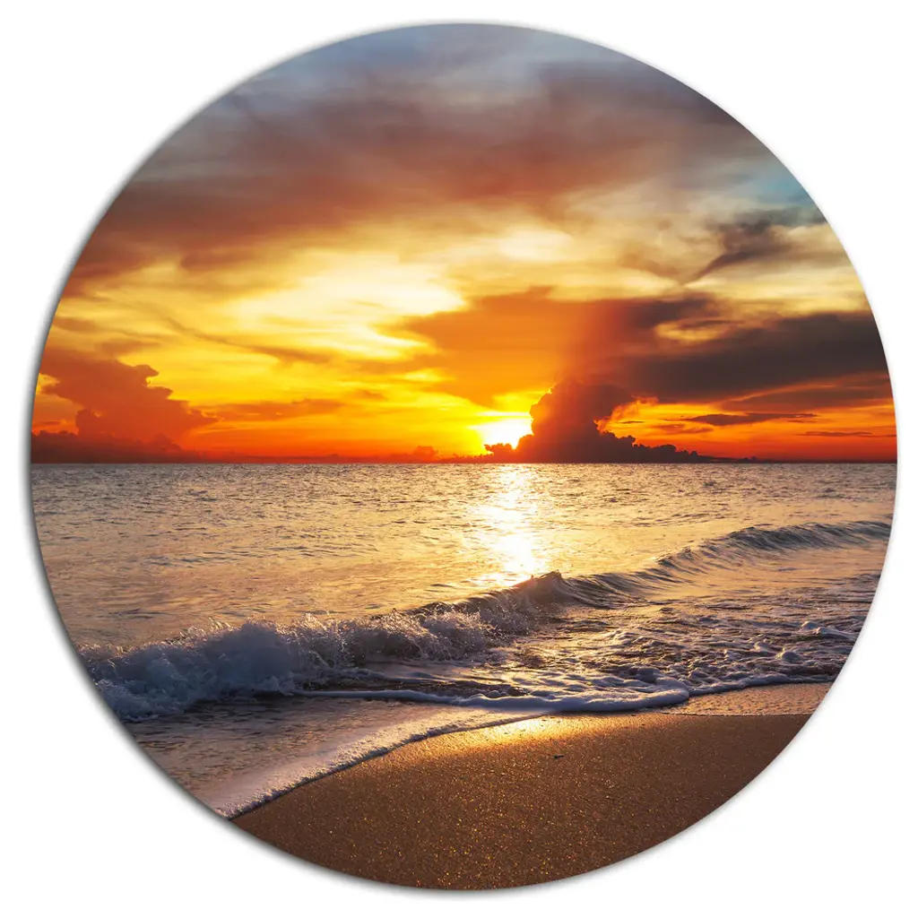 Bring Contemporary Abstraction to your home with this large Circle Metal wall art. This Boardwalk on Beach under Cloudy Sky Metal Artwork makes it the focal point of any room or office. - White Gloss Coating ensures colors are extra vibrant with light reflection.- Aluminum grade Sheet Metal with 1 inch mounting frame on the back giving the illusion that the artwork is floating on the wall..- Mounting Brackets are included along with instructions.- High Quality Digital images are created directly into a glossy aluminum panel producing a stunning and captivating print into the glossy finish of the metal.- Water, Fire and Scratch resistant HD Aluminum panels.- Looks better than any photo paper and guaranteed to last at least 20 years- Easy to clean with a microfiber cloth. Colors are far superior to regular Canvas Art. - Easy to Hang