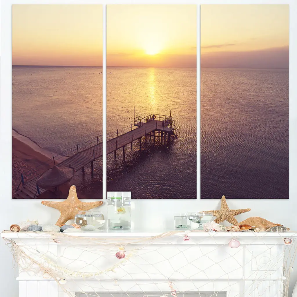 "Boardwalk Over The At Sunset" Metal Wall Art, 3 Panels, 36"x28"