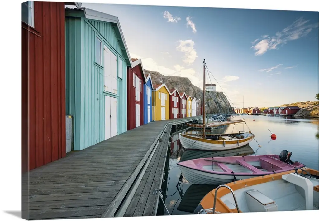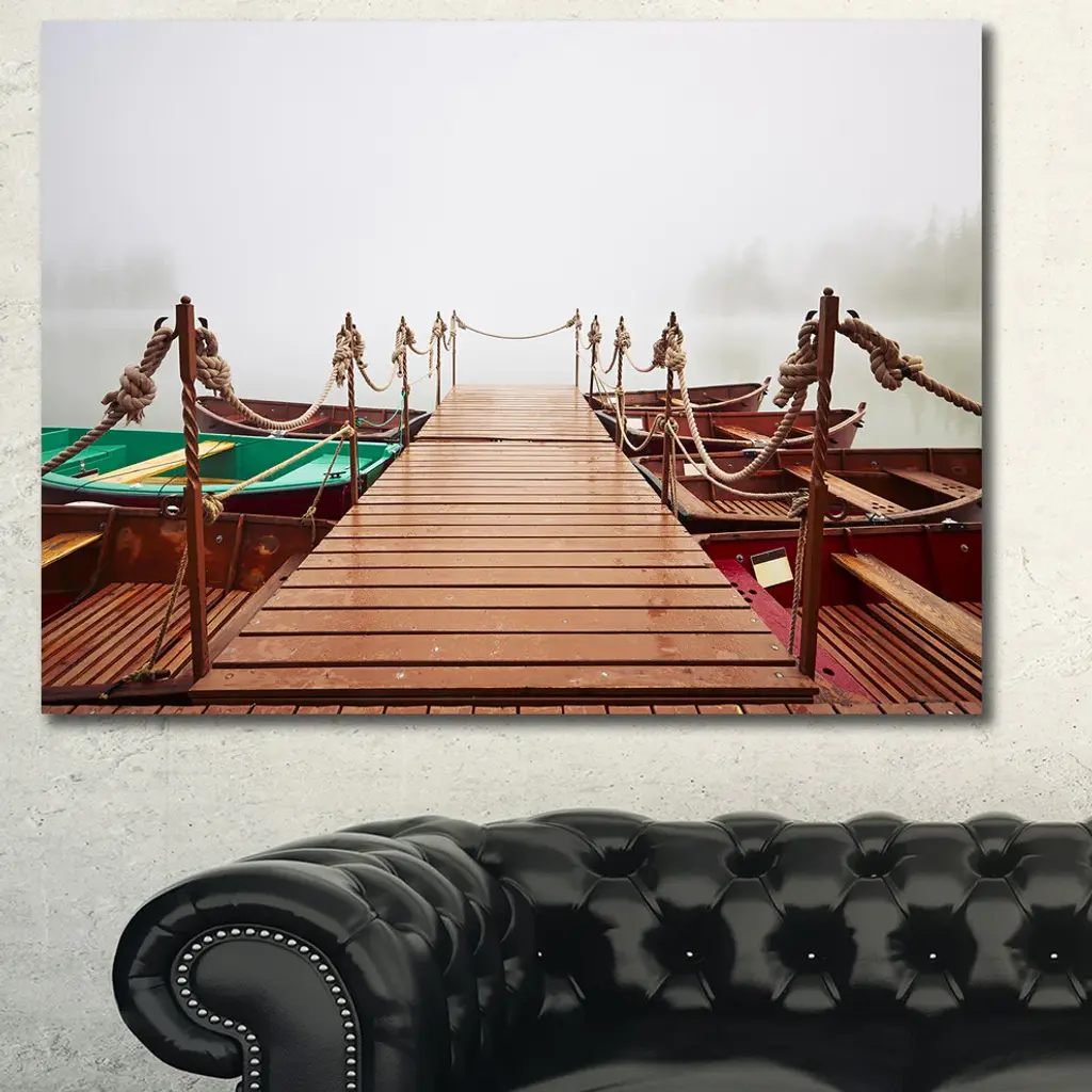 Boats In Mysterious Fog, Large Boat Canvas Art Print, 60x40