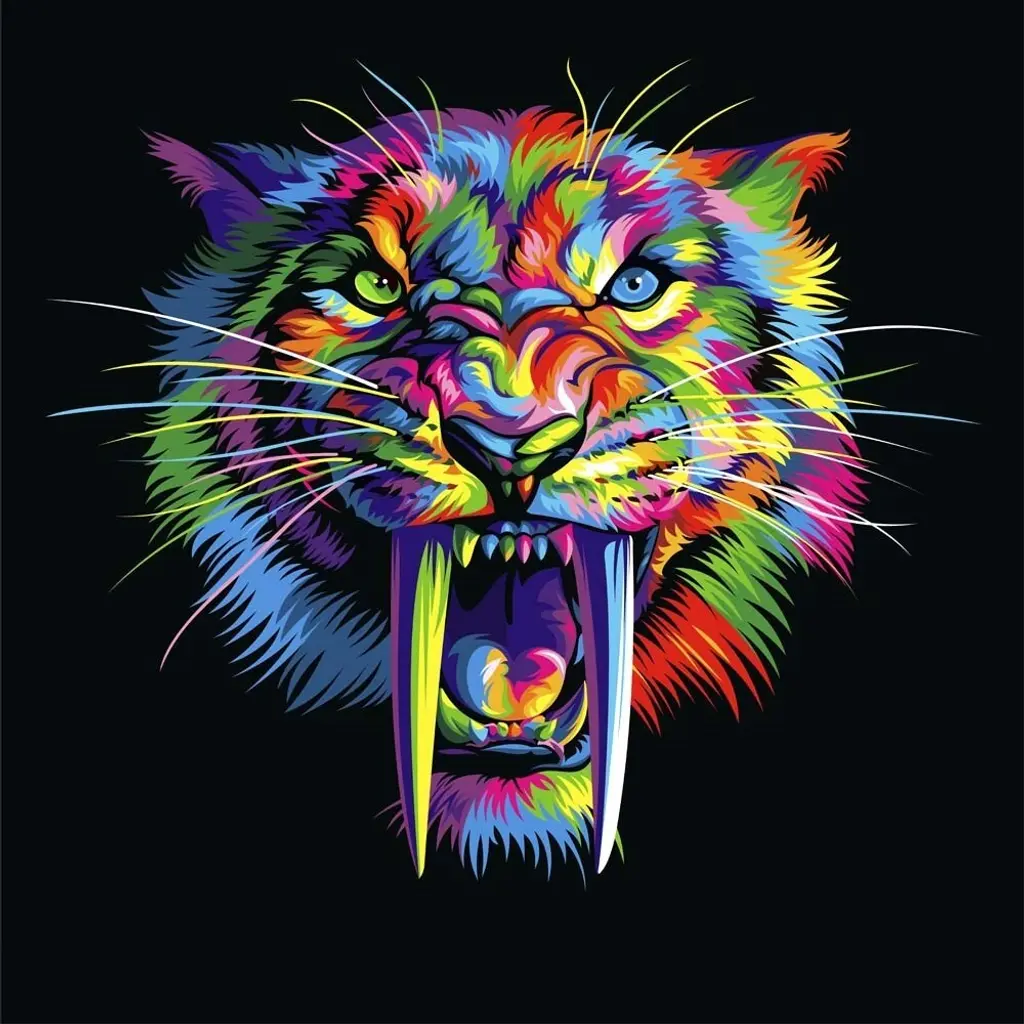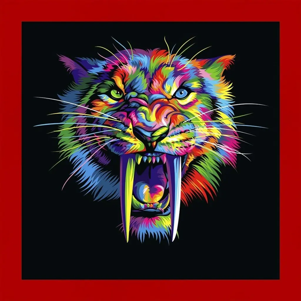 Sabertooth by Bob Weer is a high quality piece of framed artwork. The finished size of this piece is 14" X 14". It has a Thin Red with Satin Finish frame and is finished with high quality Acrylic Plexiglass. 100% Satisfaction Guaranteed.