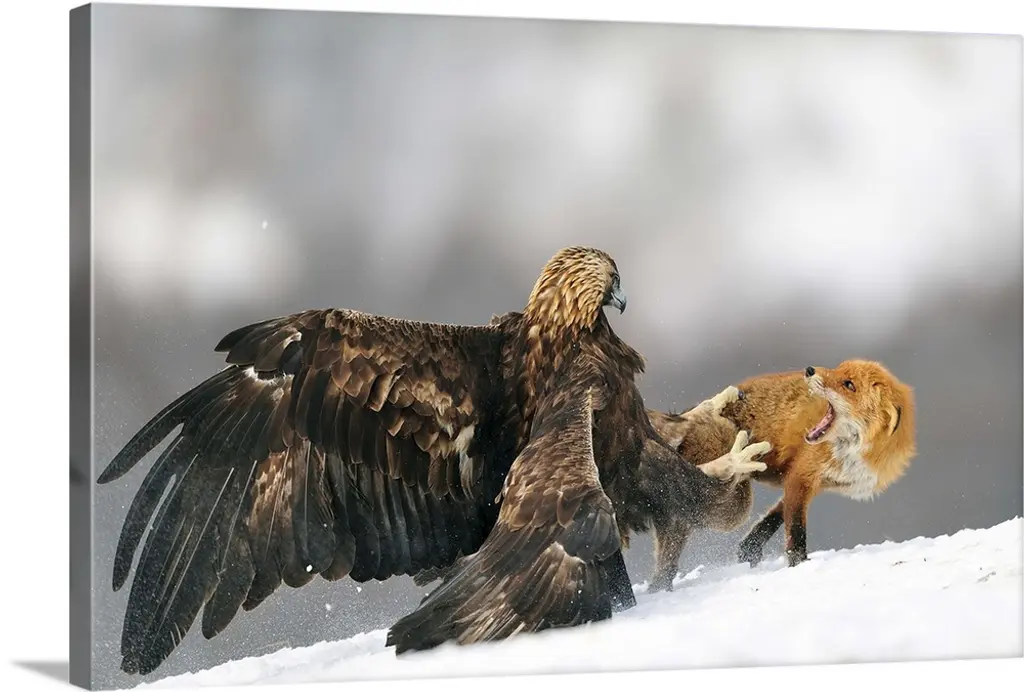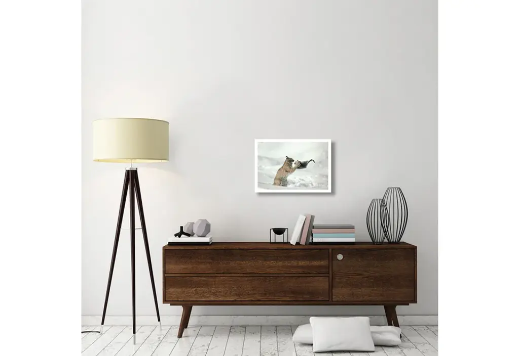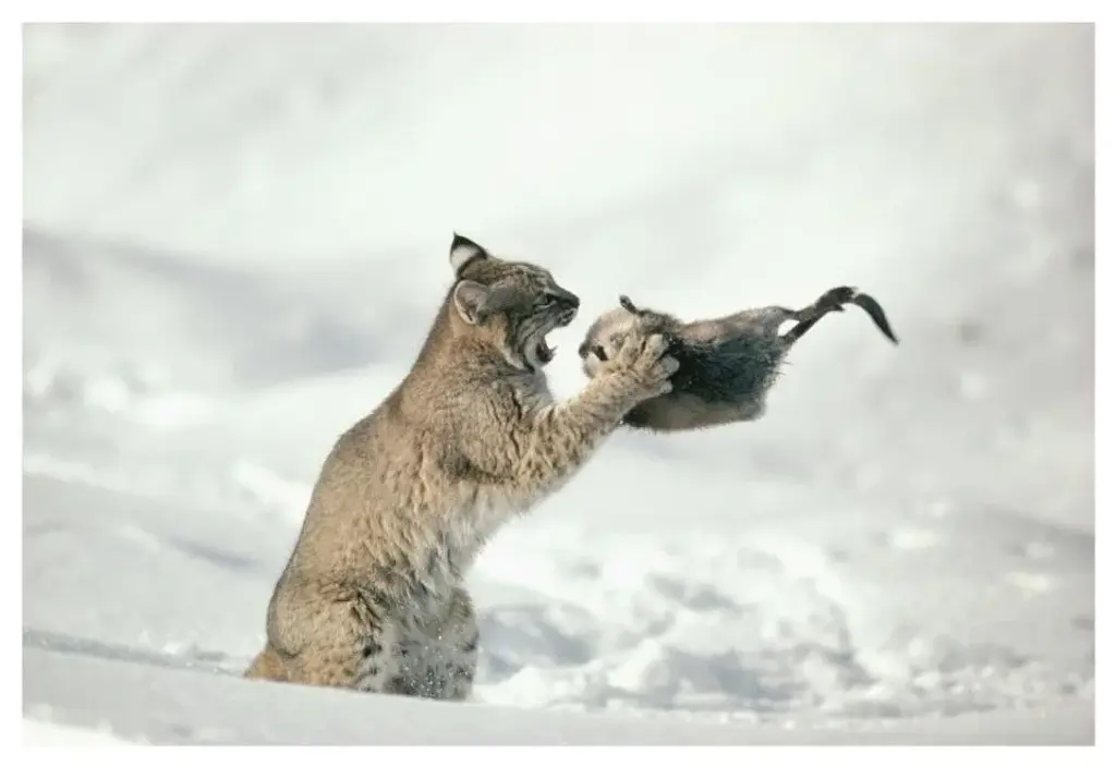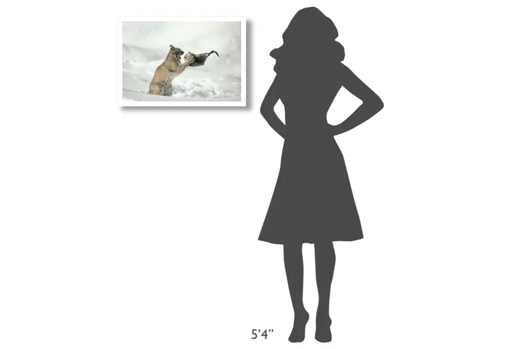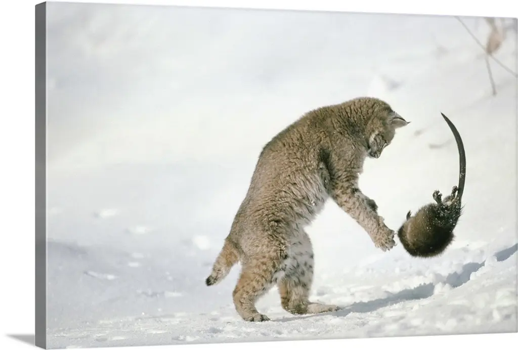 Bobcat Capturing Muskrat In The Winter, Idaho-Paper Art