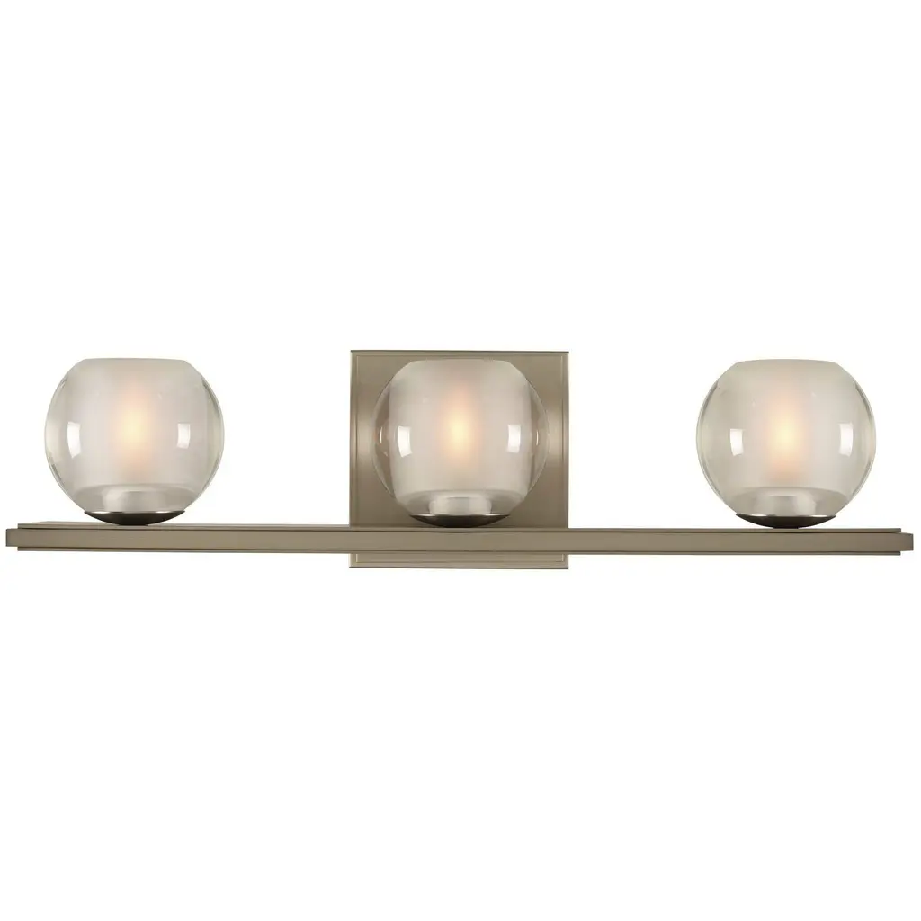 The Boca Vanity is comprised of an appealing globe-shaped clear solid glass, accented by an interesting inner frosted tube to diffuse the light source. The splash of concealed LED illumination through the solid glass makes the Boca a stunning display of light refractions. Each globe is cantilevered from the plated rectilinear backplate on a die cast fitter. These stylish and functional luminaries are offered in a beautiful Satin Nickel finish.
