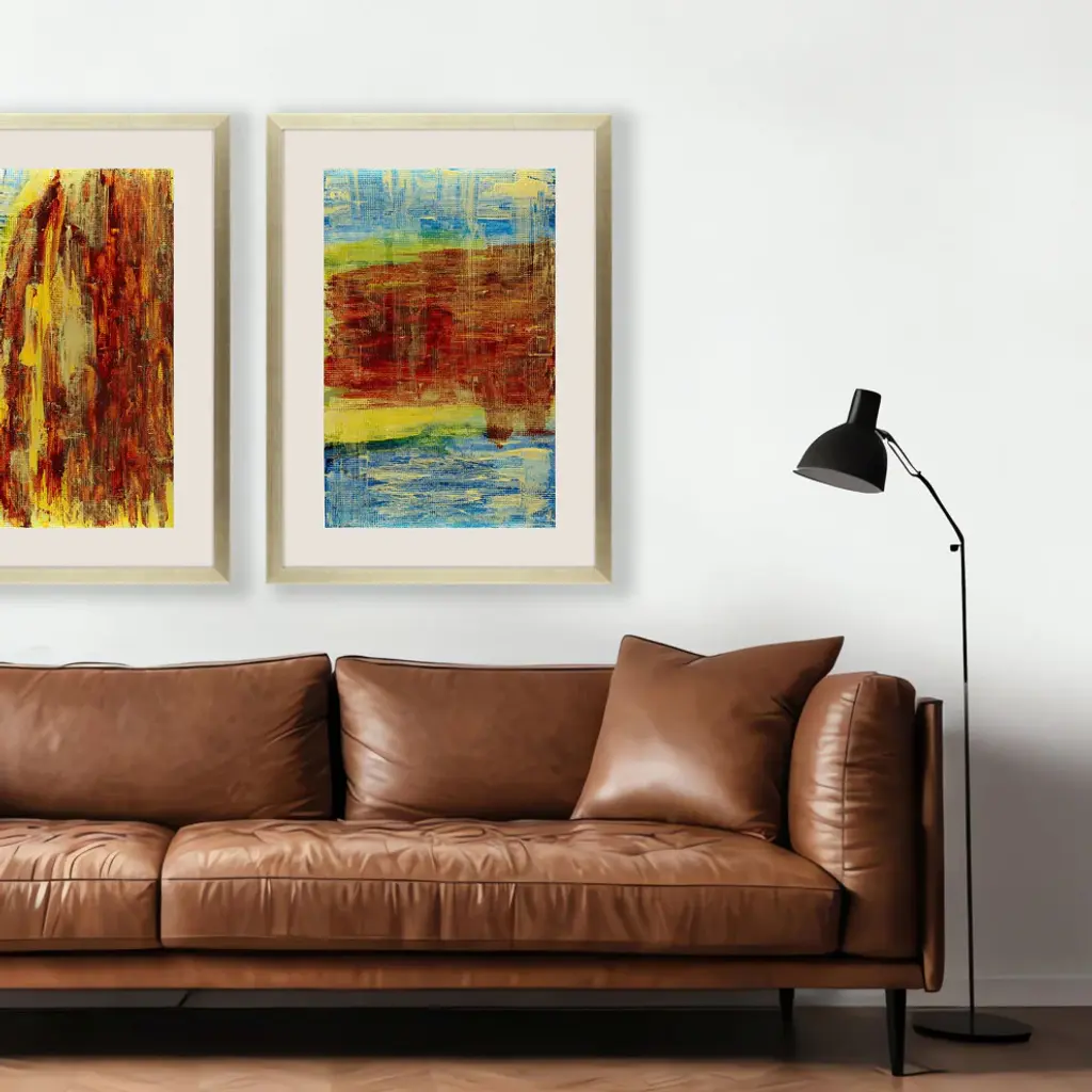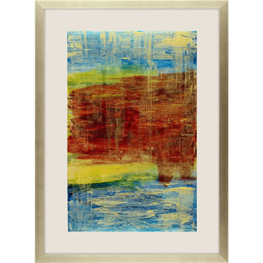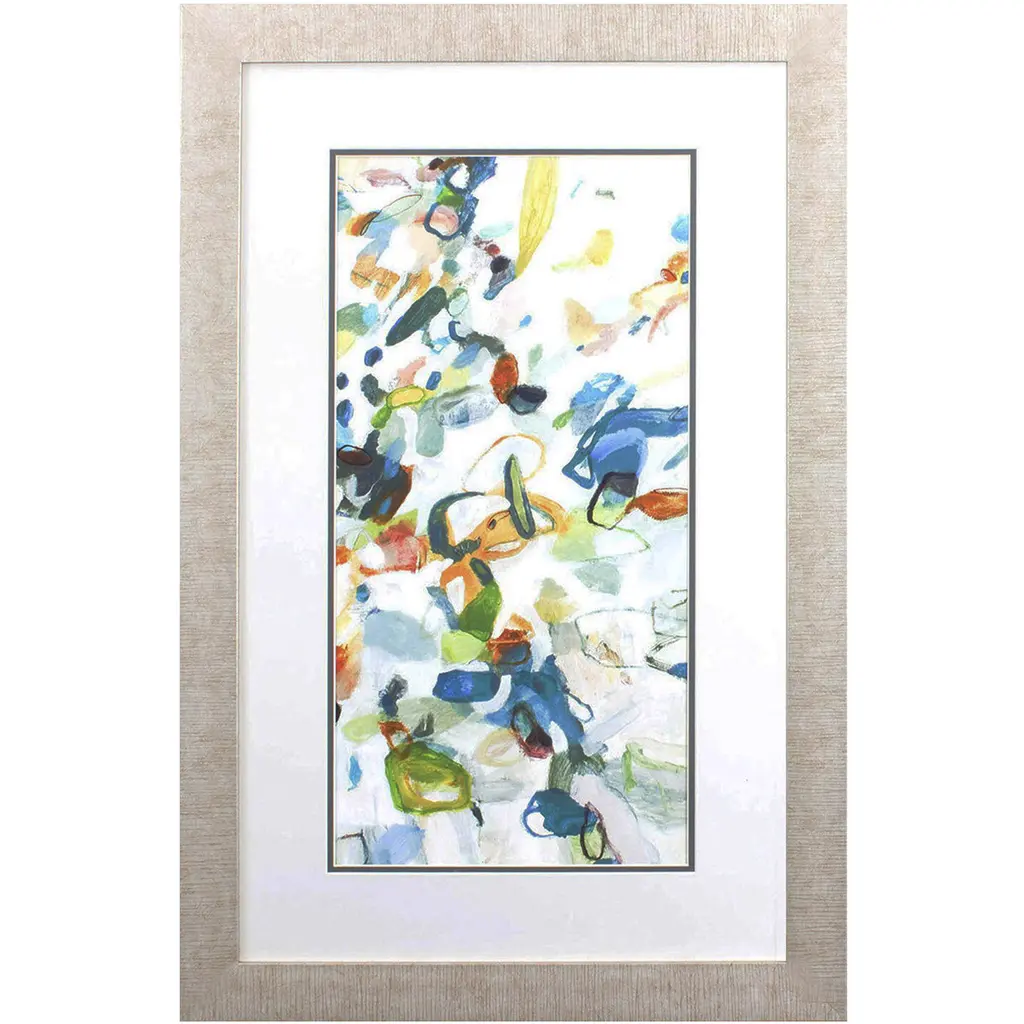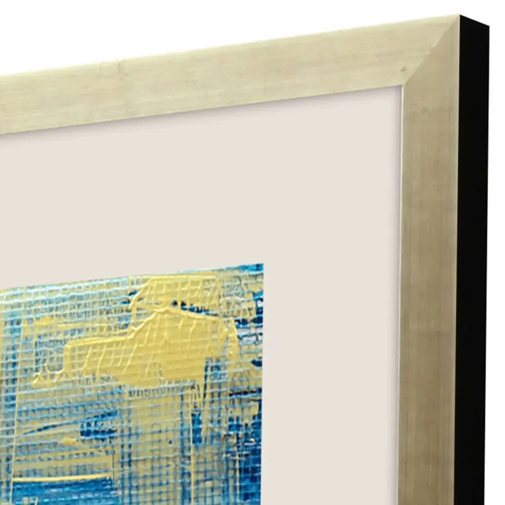 Exclusive hand painted on embossed metallic paper. Framed in a modern antique silver leaf wood with champagne gold wash and painted black edge.