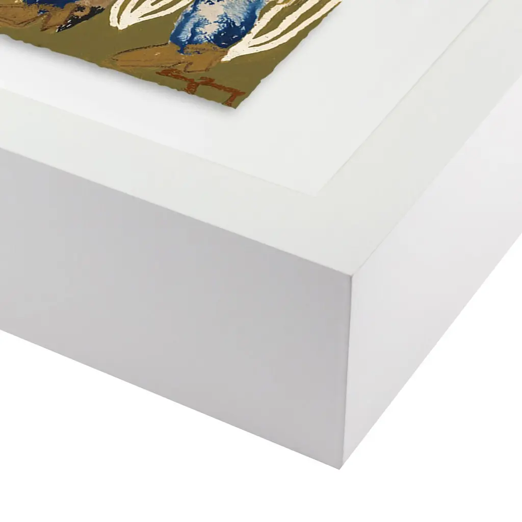 Austin figurative painter Caroline Pinney explores intimacy and human relationships in her art brut-evocative pieces. Working with a range of mediums, from oil stick and charcoal to coffee and spray paint, she often uses her own hand to manipulate materials. Printed on premium paper and float-mounted within a rustic walnut frame. Handmade in Austin, Texas.