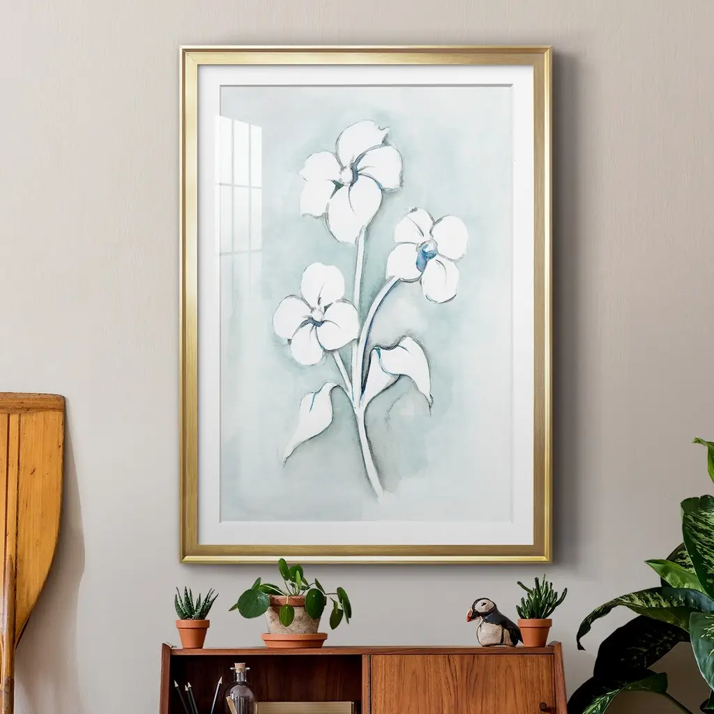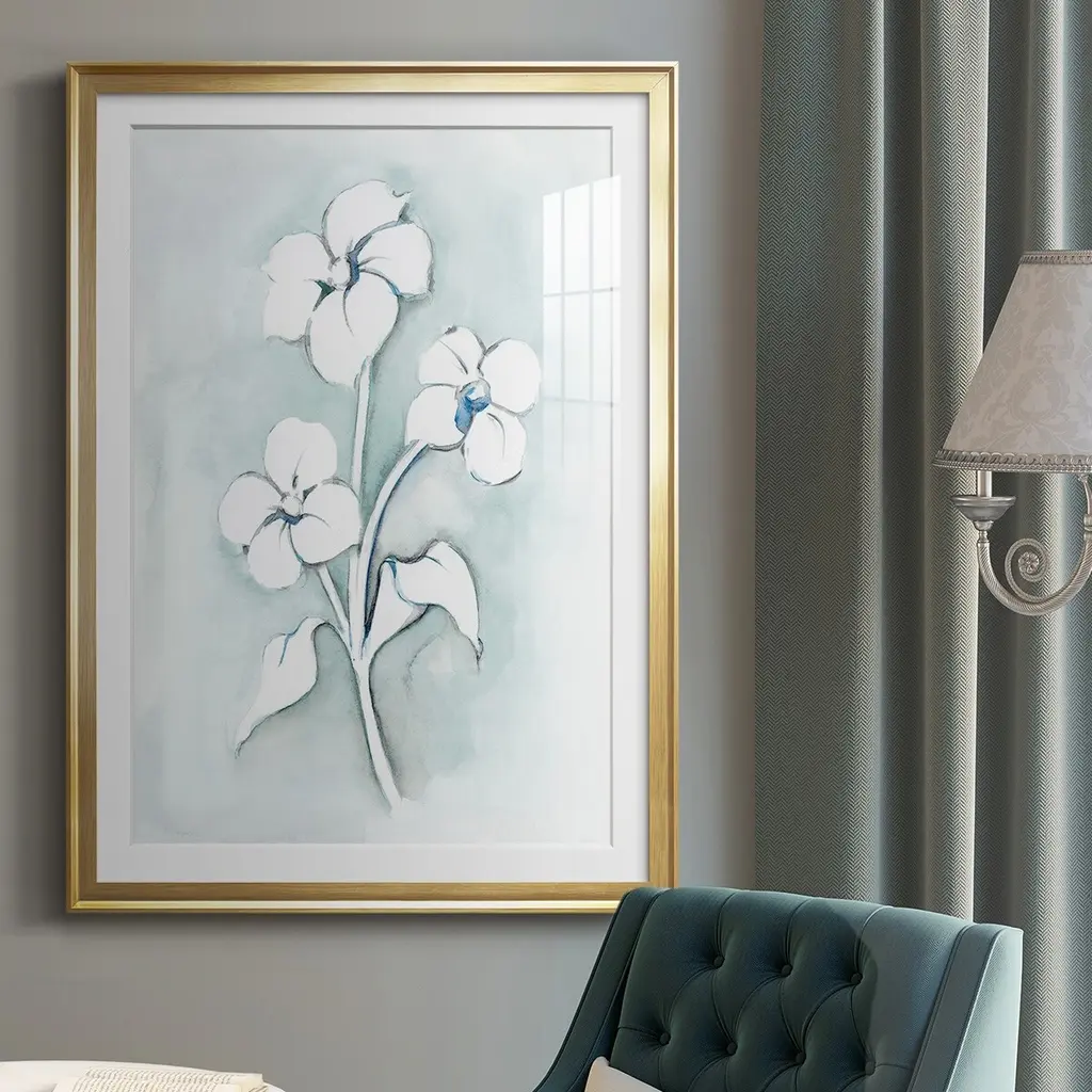 Bohemian Blue I Premium Framed Print - Ready to Hang A Premium Framed Print created to last. Framed in distressed wood and available in an array of sizes and colors Featuring a beveled a solid wood stretcher bar, each piece comes ready to hand 4 SIZES AVAILABLE 30.5''X42.5'' - Overall Size 26.5'X36.5'' - Overall Size 22.5''x30.5'' - Overall Size 18.5''x24.5'' - Overall Size Each piece is made to order. Each piece comes with hanging hardware. Made in the USA Ready to Hang Giclee Paper Print Acrylic Glass Beveled Matt Board