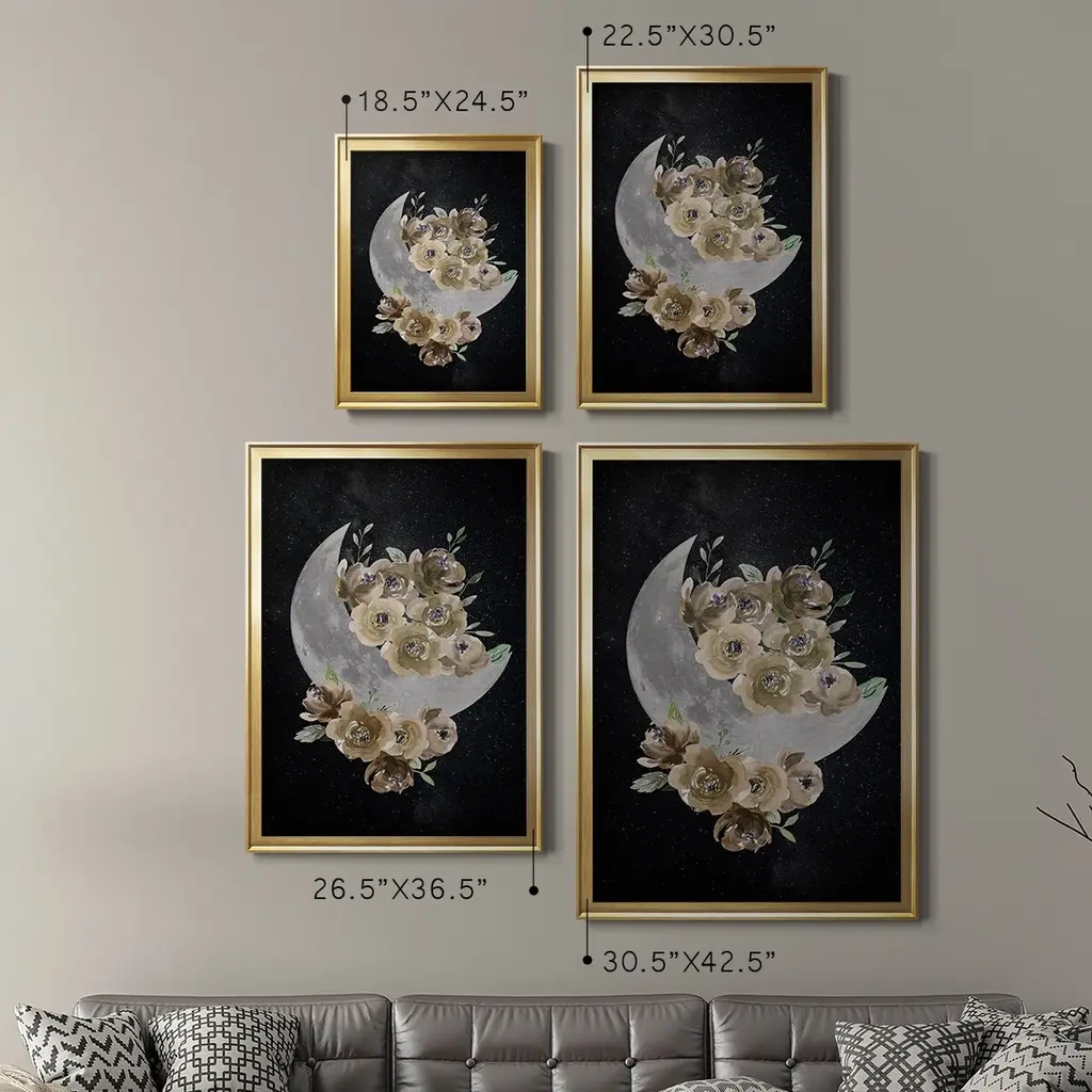Bohemian Moon Premium Framed Print - Ready to Hang A Premium Framed Print created to last. Framed in distressed wood and available in an array of sizes and colors Featuring a beveled a solid wood stretcher bar, each piece comes ready to hand 4 SIZES AVAILABLE 30.5''X42.5'' - Overall Size 26.5'X36.5'' - Overall Size 22.5''x30.5'' - Overall Size 18.5''x24.5'' - Overall Size Each piece is made to order. Each piece comes with hanging hardware. Made in the USA Ready to Hang