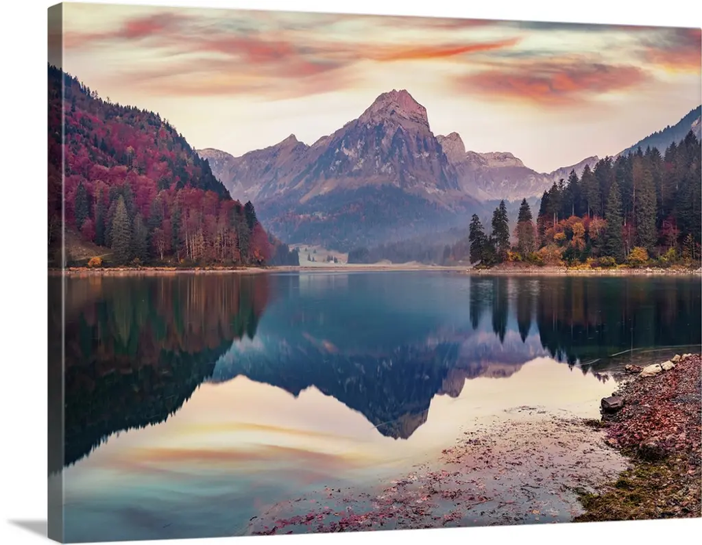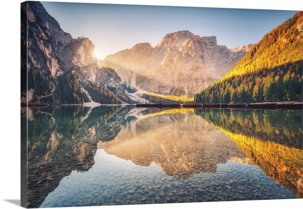 Bohinj Lake In Triglav National Park, Landscape Canvas Art Print, 60"x28"