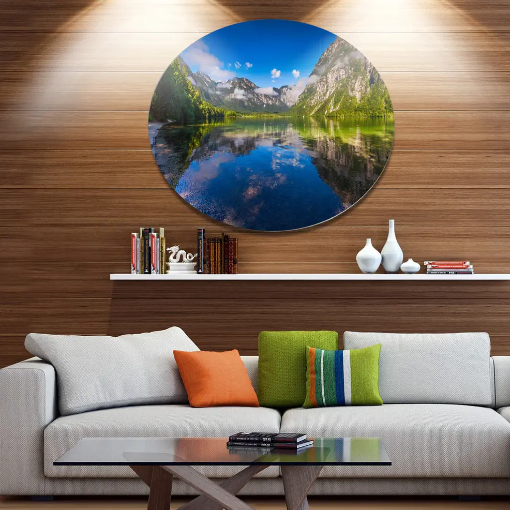Bring Contemporary Abstraction to your home with this large Circle Metal wall art. This Bohinj Lake in Triglav National Park Metal Artwork makes it the focal point of any room or office. - White Gloss Coating ensures colors are extra vibrant with light reflection.- Aluminum grade Sheet Metal with 1 inch mounting frame on the back giving the illusion that the artwork is floating on the wall..- Mounting Brackets are included along with instructions.- High Quality Digital images are created directly into a glossy aluminum panel producing a stunning and captivating print into the glossy finish of the metal.- Water, Fire and Scratch resistant HD Aluminum panels.- Looks better than any photo paper and guaranteed to last at least 20 years- Easy to clean with a microfiber cloth. Colors are far superior to regular Canvas Art. - Easy to Hang