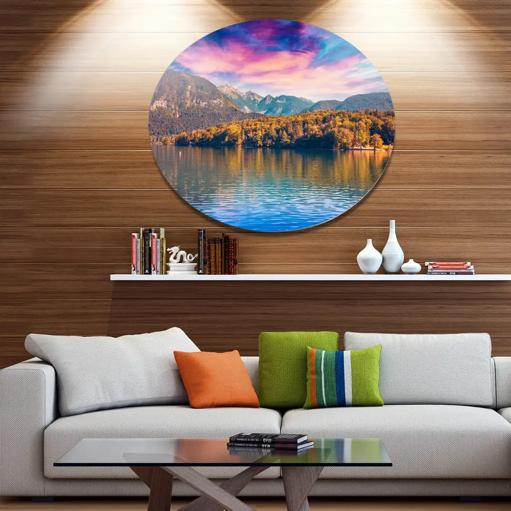 Bring Contemporary Abstraction to your home with this large Circle Metal wall art. This Bohinj Lake in Triglav National Park Metal Artwork makes it the focal point of any room or office. - White Gloss Coating ensures colors are extra vibrant with light reflection.- Aluminum grade Sheet Metal with 1 inch mounting frame on the back giving the illusion that the artwork is floating on the wall..- Mounting Brackets are included along with instructions.- High Quality Digital images are created directly into a glossy aluminum panel producing a stunning and captivating print into the glossy finish of the metal.- Water, Fire and Scratch resistant HD Aluminum panels.- Looks better than any photo paper and guaranteed to last at least 20 years- Easy to clean with a microfiber cloth. Colors are far superior to regular Canvas Art. - Easy to Hang